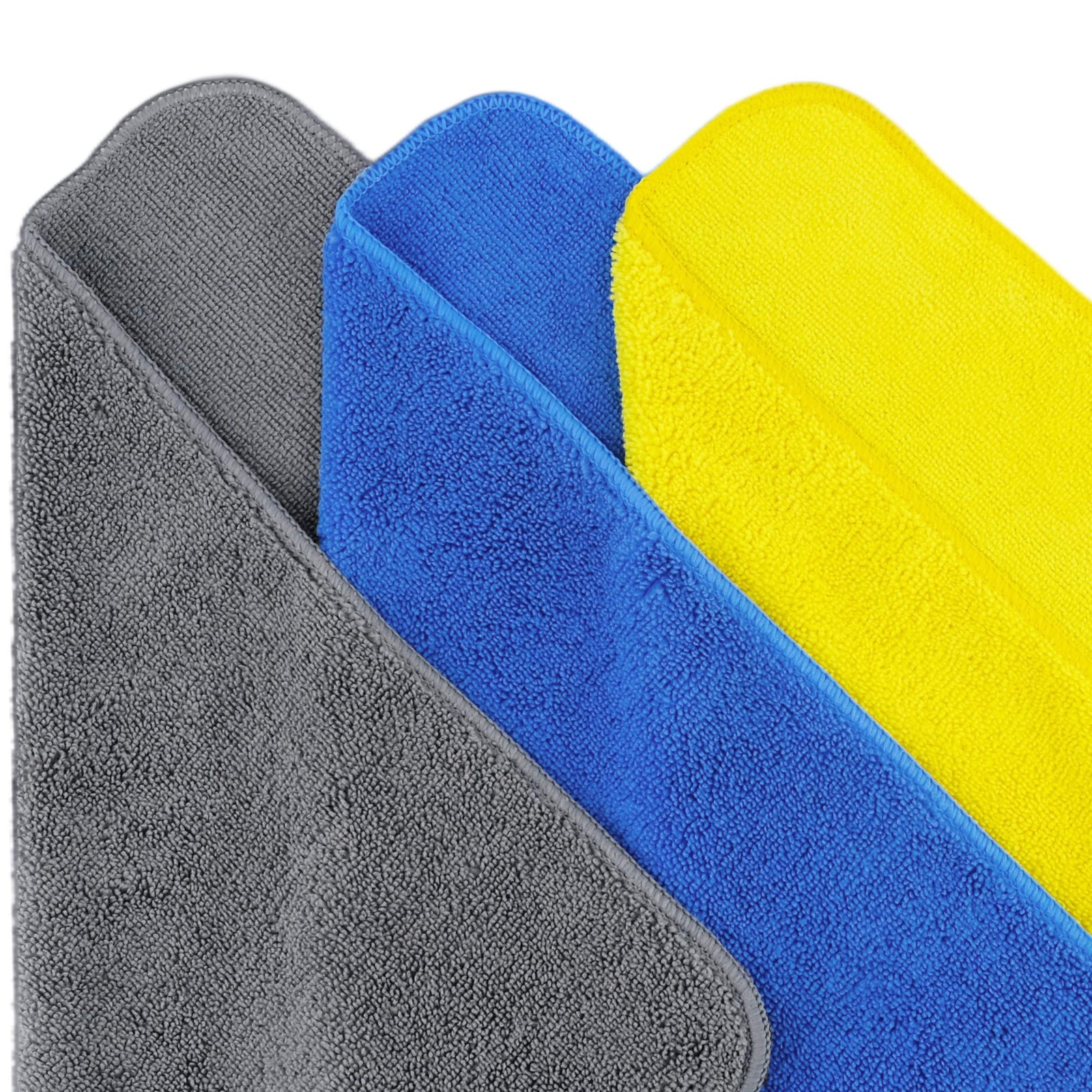 If we may, would you care for some super talented cleaning towels? We created them just for you, so that your cleaning task can be completed to your satisfaction as quickly and easily as possible. They are infused with SUPER ABSORBENT properties to CAPTURE DUST and DIRT. Can be used on virtually ALL HARD SURFACES and you need not fear of any scratches, but do take care not to use on hot surfaces. If you like, you can even clean WITHOUT CLEANERS. LINT and STREAK FREE, CLEAN, DRY and POLISH. If we may be so bold, these towels are best used for virtually all auto, automotive, garage, household, kitchen, bathroom, commercial, cleaning related tasks with our without your favorite cleaner. Use for washing, wiping, drying, detailing, polishing, dusting, the interior and exterior of vehicles (cars, trucks, boats, motorcycles, rvs, vans, suvs, etc.), glass, crystal, silverware, windows, mirrors, stainless steel, marble, granite, screens, monitors, tablets, mobile phones, eyeglasses, sunglasses, lenses and more. Use as a rag for cleaning dirt, oil, grime, and other debris off your tools or garage floor, wet or dry, with or without water. Please hand or machine wash in warm water with like colors and air dry or dry on the low setting. We ask you not use fabric softener, bleach, dryer sheets. Key Product Features Size: 16 inches by 16 inches or 40.6 cm by 40.6 cm Weave: terry Edges/Trim: sewn w/rounded corners Sewn in Label: none Classification: Premium Microfiber Classifications: Standard < 300 gsm Premium = 300 - 349 gsm Professional = 350 - 399 gsm Elite > 399 gsm Super soft and absorbent microfiber holds 8x its weight in liquids but dries 2x faster than traditional fibers Highly effective microfiber captures dust, dirt and debris; safe to use on hard surfaces, paints and clear coats Use wet or dry and with or without cleaners 100’s of times; machine wash as needed Clean, dry, and polish, to a lint free and streak free shine in your vehicle, home or office Size: 16 in. x 16 in., premium weight, no sewn tag/label, rounded corners, multiple colors offered for more sanitary color coded cleaning