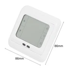 Product Description Features: * Dual temperature sensor control: the inner sensor measures the air temperature; the outer sensor measures the floor temperature. (internal sensor control by default) * Dual temperature display: real-time temperature set temperature. * Memory function: The settings can be saved when the power is cut off. (default function is off) * Automatic calibration function: room temperature display accuracy 0.5, internal accuracy 0.1. * Three working modes: Monday to Friday/Monday to Saturday/Monday to Sunday. * select of manual mode programmable mode. * Programmable temperature setting for time periods per day. Product Description: Modern touch screen room thermostats are designed to control the on/off of electric heating applications for comfort and energy saving by comparing the room temperature with the set temperature. It can control electric ball valves, electric valves, thermal valves, solenoid valves, heaters, electric heating films, and electric heating carbon crystals. It is used for floor heating. Not suitable for boilers, furnaces, water heating, air conditioning. Specification: * Material: PC+ABS * color: White * Power supply: AC 80-220V 50/60Hz * Load current: 16A (electric heating) * Power consumption: <0.3W * Accuracy: ±0.5℃ * Set point temperature range: 5°C - 35°C * Extreme temperature range: 5-99°C * Temperature sensor: * Setting unit: 0.5°C/step * Backlight: blue, automatically off after seconds * Thermostat size: 86*86*14mm (height*width*depth) * Output power: 250V AC/25A * Button: touch mode * Quantity: 1PCS Package content: 1 X temperature controller Note: 1. The real color of the item may be slightly different from the pictures shown on website caused by many factors such as brightness of your monitor and light brightness. 2. Please allow slight manual measurement deviation for the data. Payment Payment must be completed within 5 days. If you have any problems about payment, please contact us via ebay message. Delivery details We only ship to confirmed ebay Order addresses. Please comfirm that your Order address is in line with your shipping address. Please kindly note that the c ombined shipping is not provided because the shipping fee is calculated by weight. Also, the each additional item means exactly the the same color and size. It takes about 7 -15 working days to US; about 10-30 working days to other countries. Transit time may be a little delayed because of the bad weather and customs inspection . If you do not receive your item within 30 working days since payment finished, please contact us immediately for further assistance. Contact us We strive for 100% customer satisfaction! Positive Feedback is very important to us. If you have any questions, p lease feel free to contact us via "Ask seller a question" . We will reply your email within 24 working hours.