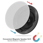Pyle 6.5” Ceiling Wall Dual Speakers - 2-Way Full Range Stereo Sound (Pair) Universal Flush Mount Design w/ 70Hz - 20kHz Frequency Response 480 Power Watts Peak & 2 Magnetic Speaker Grills PWRC63 6.5” 2-WAY SPEAKER: Pyle 6.5” ceiling wall speaker produces 2-way full range stereo sound. The product is made environmentally friendly ABS construction perfect to any room without cluttering floor space. This type of speaker is a passive speaker FLUSH MOUNT DESIGN: A universal pair of flush mount design for any flat surface, in-wall or in-ceiling installation. The product includes cut-out dimension 7.9” in diameter and 2.95” in mounting depth for quick and easy installation 70Hz - 20kHz FREQUENCY RESPONSE: Pyle 8” speaker system has a 1/2” high compliance polymer tweeters and frequency response. This flush mount speaker is pack with exceptional 8 ohm impedance rating and impressive 480 watts power handling capability 480 WATTS PEAK: Pyle in-wall speaker system were carefully combined to reproduce sound clearly with outstanding responsiveness. It is made polypropylene cone with rubber edge perfect for custom audio applications used for home, office and business 2 MAGNETIC GRILLS: The speaker has 2 convenient magnetic speaker grill and integrated clamp-type mounting brackets for quick attachment. It is a flat and thin, slim-style removable speaker grill for quick detachment and mountable in any flat surface