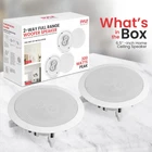Pyle 6.5 Inch 300W Dual Channel 8 Ohm Home Audio In Ceiling Marine Grade Waterproof Speaker with 60Hz to 22kHz Frequency Response, Single, 1 Pack WEATHER RESISTANT SPEAKERS: Pyle 6.5” ceiling wall mount speaker is a dual channel speaker that features weather resistant for high moisture areas. The product is marine grade construction perfect for indoor and outdoor installation 60Hz - 22kHz FREQUENCY RESPONSE: Pyle ceiling speaker system is equipped with (2) 1/2” polycarbonate tweeters and frequency response. This product is pack with exceptional 8 ohm impedance rating and impressive 300 watts power handling capability FLUSH MOUNT DESIGN: A single flush mount design stereo speaker for simple and easy in-wall / in-ceiling installation. The product features convenient push-type speaker terminals allow for quick and hassle-free speaker wire connection 300 WATTS PEAK: Pyle in-wall speaker system were carefully combined to reproduce sound clearly with outstanding responsiveness. The heavy-duty voice coil can achieve wide-ranged sound performance speakers and extending the life of the product EASY INSTALLATION: The product includes cut-out template for easy installation. The cut-out template measure 7 2/3” in diameter and 2 3/4” in mounting depth. The product also includes the mounting hardware for precise application or installation