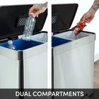 Our Qualiazero 16 Gallon Dual Compartment Step On Trash & Recycling Can includes two removable, leak-proof inner buckets - black for trash and blue for recyclables! Our activated carbon filter deodorizer absorbs unpleasant odor and keeps your kitchen smelling fresh! Its large capacity is perfect for any size family and each compartment is compatible with any standard 10-gallon trash bag. Great for the kitchen or any high-traffic areas. The sturdy foot pedal controls the lid smoothly and keeps your hands free. Upon release of the foot pedal, the lid closes softly and silently without slamming shut. Crafted from commercial-grade stainless steel, our step can is built to withstand everyday consistent use and is smudge resistant - meaning it will stay clean longer! The two inner bins slide smoothly in and out of the trash can for easy trash and recyclable removal and convenient bag changes with no mess. For regular cleaning, use a damp microfiber cloth to effortlessly wipe clean! Ideal for kitchens. Dual Compartment Design: Includes two removable, leak-proof inner buckets—black for trash and blue for recyclables—for easy sorting. Activated Carbon Filter Deodorizer: Absorbs unpleasant odors to keep your kitchen smelling fresh. Large Capacity: Total of 16 gallons, perfect for any family size. Each compartment fits standard 10-gallon trash bags. Hands-Free Operation: Sturdy foot pedal allows smooth lid control, keeping your hands free and hygienic. Soft-Close Lid: Lid closes softly and silently without slamming after releasing the foot pedal. Durable Construction: Made from commercial-grade stainless steel to withstand daily use. Smudge-Resistant Finish: Resists fingerprints and smudges, keeping the can looking clean longer. Easy Maintenance: Inner bins slide in and out smoothly for effortless trash and recycling removal. Simple Cleaning: Easily wiped clean with a damp microfiber cloth. Versatile Placement: Ideal for kitchens and high-traffic areas. On Feb 18, 2025 at 21:25:25 PST, seller added the following information: