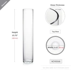 Include: 1 Piece Quality Clear Cylinder Glass Vase Carefully Packaged, Vase Filler and Flowers are Not Included. Size: Width (Diameter): 3.15" (80 mm), Height: 15.75" (400 mm), Thickness about 0.2" varies slightly due to handmade process. Feature - A Piece/Pieces of durable handblown glass vases, well made with thick and durable wall and Base. The cylinder glass vase has a Versatile and timeless design. Quality - Each Vase is meticulously hand-crafted from high-quality, transparent glass, allowing the natural beauty of flowers to shine through and create stunning visual displays. Uses - Floral Arrangement, Flower Vase, Wedding Centerpieces, Floating Candle Holder, Home & Accent Decor, Floral Design, Tabletop, Gift, Storage container, Artistic Display, Terrarium Planters. Product Description VCY0408 Welcome to WGV store! (WGVI: Wholesale Glass Vases International) Our goal is to deliver the greatest variety of pieces to offer our customers with both "High End" and "Regular" quality glass and ceramic containers International team LA warehouse located LA, Dallas & Atlantic Showroom Import from China Customer first What we have? 3"D & 4"D Glass Cylinder Vase Size Available: Width: 3" (Fit up to 2.5" width Candle) Height: 3", 5", 8", 10", 12", 16" Width: 4" (Fit up to 3.5" width Candle) Height: 4", 6", 8", 10", 12", 14", 16", 18", 20", 24", 28" A simple and transparent style glass vase with a bouquet of your favorite flowers, adding a sense of fashion, embellishing your life, and let you have a happy mood every day. 100% handmade glassware skinny cylinder vase/candle holder smooth body curve clear texture home/office decoration event display WGV Quality Glass - Cylinder (3" & 4" D) Cut to perfection, instead of having the cheap looking machine-made glass cylinder vase with the sealed rim on top. Glass thickness about 0.2" (5 mm), varies slightly due to handmade process WGV Quality Glass - Cylinder (3" & 4" D) 100% hand-blown quality thick glass, may contain air bubbles as well as exhibit slight variations and imperfections due to the handcrafting process. The cylinder vases features good glass wall thickness to ensure durability. WGV Quality Glass - Cylinder (3" & 4" D) Our glass cylinder vase collection contains a huge variety of widths and heights of glass cylinder vases that can work with nearly every imaginable design of floral or candle arrangements. There can be no better option if you’re looking for the perfect combination of inexpensive elegance and functionality. WGV Quality Glass - Cylinder (3" & 4" D) Professional packaging Your experience is always our priority. Glass vases are fragile products, please treat it carefully when installed. Note: If you receive item broken, it is not consider defective. Please contact our office immediately for replacement or refund. There is no need for returning broken vases, just simply send us a picture would do. Broken vases are not defectives on the vases; it is caused by carrier damage during transit. Please do not file it on as defective, as may confuse between shipping damage and defectiveness of the product. thick rim quality heavy & thick bottom wide selection well packaging Candle Holder Floral arrangement Planter terrarium & Aquarium Accent light First Use & Extended Care Prior to first use, glass pieces should be hand washed individually in warm soapy water, rinsed thoroughly and dried with a lint free cloth. For optimal finish & clarity, clean with a 50/50 solution of vinegar and water, let stand for a few hours then rinse well and dry with a lint free cloth. Our glass is produced overseas in extremely large quantities for our wholesale customers, due to transit and mass storage, all vases should be cleaned before use to remove any accumulated dust/dirt. Change liquid contents of glass containers frequently. This will help preserve the products finish and avoid film build-up. Glass pieces should not be cleaned in a dish washer. Do not use products in microwaves or conventional ovens.