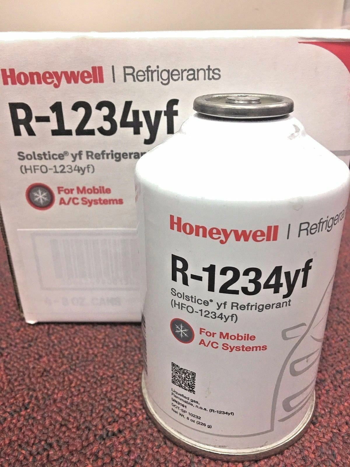 Gregoriou Brothers Refrigeration Since 1979 Frosty-Freeze R1234yf Refrigerant Honeywell, 8 oz Solstice® yf, FREE CAN TAP, FREE SHIPPING R-1234YF R1234yf Refrigerant Honeywell 8 oz Can NOTE: Solstice® yf Refrigerant (R-1234yf) Honeywell HFO-1234yf is a replacement for R-134a as a refrigerant in automotive air conditioners. HFO-1234yf is the first in a new class of refrigerants acquiring a global warming potential rating 335 times less than R-134a (and only 4 times higher than carbon dioxide, which can also be used as a refrigerant but has significantly different properties to R134A, especially requiring operation at around 5 times higher pressure) and an atmospheric lifetime of about 400 times shorter. This product is in becoming more popular and in many new vehicles in 2017. It is growing in popularity and Refrigerant Depot is your number one source. Solstice yf Refrigerant is a near drop-in replacement for R-134a in automobile A/C applications, helping automakers around the world comply with EU low GWP requirements. Air conditioning systems using Solstice yf refrigerant are generally more energy efficient than competing technologies. ASHRAE # R-1234yf Notes Starting in January 2011, all new vehicle types must have an air conditioning refrigerant with a global warming potential (GWP) below 150. From 2017 on, this will apply to all new vehicles. This is based on the MAC Directive (2006/40/EG), passed in July 2006. Solstice yf refrigerant can be used in in Europe, Japan, Korea and the U.S. Under the ECE Agreement, Solstice yf refrigerant is also approved in Germany. APPROVALS: Solstice yf refrigerant is registered under the EU chemical regulation REACH, and is included in the U.S. E.P.A.’s SNAP Program (Significant New Alternatives Policy). With this program, the EPA evaluates new and improved substances that replace ozone-depleting substances. As indicated on the EPA Web Site under "Refrigerant Sales Restrictions", and as of January 01, 2018, refrigerant R134a and R1234yf that is sold in containers of 2 Lbs. (32 oz.) or less, does NOT require EPA Certification to purchase. This is directly from the EPA Web Site...... " Small cans of non-exempt MVAC (Motor Vehicle Air Conditioning) Refrigerant for example, (containers designed to hold two pounds or less) that have unique fittings, and self-sealing valves, can continue to be sold to persons without EPA Certification for DIY (Do-It-Yourselfers) on their vehicles. This item ships UPS-Ground as a Hazardous Material Package under the "ORM-D" Limited Quantities exemption as listed in DOT-US CFR49 shipping regulations. R-1234YF R1234yf Refrigerant Honeywell 8 oz Can NOTE: Solstice® yf Refrigerant (R-1234yf) Honeywell HFO-1234yf is a replacement for R-134a as a refrigerant in automotive air conditioners. HFO-1234yf is the first in a new class of refrigerants acquiring a global warming potential rating 335 times less than R-134a (and only 4 times higher than carbon dioxide, which can also be used as a refrigerant but has significantly different properties to R134A, especially requiring operation at around 5 times higher pressure) and an atmospheric lifetime of about 400 times shorter. This product is in becoming more popular and in many new vehicles in 2017. It is growing in popularity and Refrigerant Depot is your number one source. Solstice yf Refrigerant is a near drop-in replacement for R-134a in automobile A/C applications, helping automakers around the world comply with EU low GWP requirements. Air conditioning systems using Solstice yf refrigerant are generally more energy efficient than competing technologies. ASHRAE # R-1234yf Notes Starting in January 2011, all new vehicle types must have an air conditioning refrigerant with a global warming potential (GWP) below 150. From 2017 on, this will apply to all new vehicles. This is based on the MAC Directive (2006/40/EG), passed in July 2006. Solstice yf refrigerant can be used in in Europe, Japan, Korea and the U.S. Under the ECE Agreement, Solstice yf refrigerant is also approved in Germany. APPROVALS: Solstice yf refrigerant is registered under the EU chemical regulation REACH, and is included in the U.S. E.P.A.’s SNAP Program (Significant New Alternatives Policy). With this program, the EPA evaluates new and improved substances that replace ozone-depleting substances. Gregoriou Brothers Refrigeration Since 1979 Frosty-Freeze R1234yf Refrigerant Honeywell, 8 oz Solstice® yf, FREE CAN TAP, FREE SHIPPING R-1234YF R1234yf Refrigerant Honeywell 8 oz Can NOTE: Solstice® yf Refrigerant (R-1234yf) Honeywell HFO-1234yf is a replacement for R-134a as a refrigerant in automotive air conditioners. HFO-1234yf is the first in a new class of refrigerants acquiring a global warming potential rating 335 times less than R-134a (and only 4 times higher than carbon dioxide, which can also be used as a refrigerant but has significantly different properties to R134A, especially requiring operation at around 5 times higher pressure) and an atmospheric lifetime of about 400 times shorter. This product is in becoming more popular and in many new vehicles in 2017. It is growing in popularity and Refrigerant Depot is your number one source. Solstice yf Refrigerant is a near drop-in replacement for R-134a in automobile A/C applications, helping automakers around the world comply with EU low GWP requirements. Air conditioning systems using Solstice yf refrigerant are generally more energy efficient than competing technologies. ASHRAE # R-1234yf Notes Starting in January 2011, all new vehicle types must have an air conditioning refrigerant with a global warming potential (GWP) below 150. From 2017 on, this will apply to all new vehicles. This is based on the MAC Directive (2006/40/EG), passed in July 2006. Solstice yf refrigerant can be used in in Europe, Japan, Korea and the U.S. Under the ECE Agreement, Solstice yf refrigerant is also approved in Germany. APPROVALS: Solstice yf refrigerant is registered under