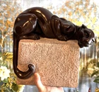 SEE VIDEO to appreciate this signed RARE original Alexsander Danel (America, 1940-2001) sculpture. This is a large art deco sculpture of a brown panther created in1996 by American artist Alexsander Danel for Austin Productions. The piece is dated with year, signature of the artist, and the production whom the piece was made for on the two corners of the sculpture. The sculpture is made of polychrome and stone, showcasing modernist style. It is a rare piece signed by the artist, measuring 12 inches in length, 11 inches in height, and 4 inches in width. This unique and original statue of this gorgeous panther captures the essence of the artist's work and is a valuable addition to any art collection. This piece is vintage as it is over 30 years old. These are very rare to find and more so over the past 10 years. Alexsander (sometime people write Alexander) Danel's sculpture are not only sought after but are collector pieces --- What a great find, indeed! A large art deco sculpture of a Panther designed by Alexsander Danel for Austin Sculptures, dates 1996. Presents marks of use and wear. Offering a regal and modernist/art deco style large sculpture: The artist Alexsander Danel for Austin Products. Dated 1990 is signed A. Danel. In good vintage condition. Very minor one or two tiny paint chips on the back, not even worth mentioning, but of course, one must. A very handsome animal and impressive molded rendering. You will receive Alexsander Danel's sculpture that is within the pictures. You may see other items in the background, as well. If you are new here, these are items that will be listed and in my Ebay shop either this week or next week. So, you get a sneak peak of what is coming up next!! :) Here is my Ebay shop : YouBeYou LLC MORE ABOUT THE ERA OF THIS PIECE This piece is the result of a deep knowledge of animal anatomy, inspired by the panthers made during the Art Deco period (20-30's). Among all the representations of wild animals in Art Deco, the panther motif was particularly common and Alexsander Danel was the most sought after artist of that time and even today! The artist's quality and elegance were especially valued. The representation of wild animals was one of the most frequent themes during the Art Deco period, since this was the time of the discovery of wild Africa, mainly by reporters covering the new rallies. European society was fascinated by the exotic fauna in freedom, a reflection of a world still to be exploited, still far from the control imposed by civilization. If you have any questions even after you have purchased the item --- I am here for you to answer any questions that you may have! I strive to work diligently with every buyer to ensure they are a satisfied buyer, so please contact me anytime. This is a pre-owned item and I take great care to accurately describe the item but please see the pictures for full details. While we do our best to list every item in detail, these are vintage and pre-owned items, and some flaws are to be expected. Please see all photos/ video as they are a large part of the description of our items. Items come from a smoke-free environment. Each item is described in accurate detail with multiple measurements and various photos at different angles front and back, side to side, top and bottom. I have additional similar items that I have yet to list that you may be interested in. Feel free to follow my store ( YouBeYou LLC ) to see those when posted. Please see all photos/ video as they are a large part of the description of our items. I strive to make every purchase a pleasant experience. Please feel confidence in you purchase that I'll make every effort to correct any issues that may arise. If used, there are always some signs of wear -- well, because it is used, vintage, or antique. Most items are used -- Each item is inspected for quality. It is very important to us that you have a happy Ebay experience! Thank you for supporting a small business like ours! (Note: pictures may include measurements, and some have a video.)