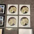YOU GET 4 OF THE FLOWER COASTERS AND YOU GET 4 OF THE OTHER KIND! A GREAT PRICE FOR THIS AWESOME SET OF COASTERS! NOTICE THE SLIGHT DISCOLORING SHOWN IN THE PHOTOS, NOT SURE IF ITS BECAUSE THEY WERE USED OR MANUFACTURING ERROR, BUT THEY STILL LOOK AMAZING! Please review all of the pictures shown above, as you will get the EXACT item/items shown! Please feel free to contact me with any questions or OFFERS!