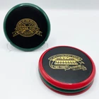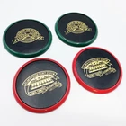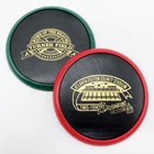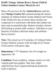RARE Vintage Atlanta Braves Turner Field & Fulton Stadium Coaster Mixed Set of 4 Show off your love for the Atlanta Braves with this rare Vintage Coaster Set commemorating the former stadiums of Atlanta-Fulton County Stadium and Turner Field. Perfect for any occasion, these coasters are comprised of a wood inset with black faux leather top layer and an enameled edge. Bottom includes a brown felt backing to protect table surfaces. Add them to your barware or kitchen collection today and celebrate Braves history! Note: This mixed set of 4 includes; (2) Atlanta-Fulton County Stadium coasters with red edge & (2) Turner Field coasters with green edge. Dimensions: 3.75" Diameter, Set of 4 weighs an impressive 1lb Condition: Great condition, vintage coaster set with original gold tone graphic. May have slight imperfections from original printing & production (refer to photos).