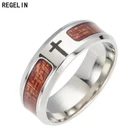 REGELIN stainless steel wedding ring inlaid Life Tree Cross teak Woody