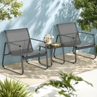 This patio set is a fantastic addition to any outdoor space! The sleek design and comfortable sofa chairs make relaxing outside a breeze. The glass table adds a modern touch, and the sturdy construction holds up well in my garden. Perfect for small gatherings or just lounging by the pool—great value for the price!