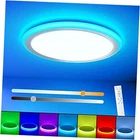 Return Policy Fast Delivery Trusted seller RGB Led Flush Mount Ceiling Light with Remote Control, 13Inch 24W 2400LM 3000-6500K Dimmable Color Changing Light Fixture, Modern Round White Ceiling Lamp for Bedroom Kids Room Party Festival Product Description Modern Ultra Thin Design: Thickness of 13 inch round RGB ceiling light is only 0.62 inch. This low profile ceiling lamp can be used on a low ceiling, attic, basement etc. RGB flat panel light fixture modernize your room 4 Lighting Modes: Color changing ambient ceiling light is so fun and versatile. 3000k-6500k white light and RGB colored ring light can be lit up at the same time. T are 4 lighting modes to meet all the options you need:① RGB mood lighting ② 3000k-6500k dimmable light ③ RGB light and 3000k-6500k dimmable light ④ night light 7 RGB Colors Selectable: color changing ambient side light fixture has 7 RGB colors and 2 RGB color cycle modes ( fast or slow). The light is bright and the LED ring can create a very nice ambiance. You can choose different colors according to your mood, which will also bring a happy atmosp to your family. Remote ceiling lamp can be used as an atmosp lamp, a mood lighting 3000k-6500k Dimmable Ceiling Light: About dimmable led flush mount ceiling light with remote control, the color temperature range is 3000k-6500k ( Don't fit for dimmer) and the brightness range is 10%-100% ( Don't fit for dimmer switch or wall switch). The lamp can retain the last settings if you turn on for more than 1 minute and turn it off for more than10s Night Light: remote flush mount light fixture emits 3000k soft white lighting in nightlight mode. It also has 30 seconds off delay function. It's suitable for children or night breastfeeding Quick and Easy to Install: Our low profile ceiling light with a hanging wire rope and accessories, you can install the flat lamp by rotating and finish it in 15 minutes. 13inch flushmount hardwired ceiling light fixture is compatible with the most junction boxes (2.75 inches - 5.4 inches) Wide Application: Dimmable RGB color changing ceiling light, is great for live, study, work, exercise, entertainment. E.g, bedroom, living room, dinning room, kitchen, closet, kids room, home office, massage room, pool table light, game room, themed party, movie night, festival, Valentine's Day, Halloween, Christmas and etc Shipping Returns Payment Shipping Shipping is FREE to all addresses other than APO/PO boxes in the lower 48 states. All our stock ships from US-based warehouses. Shipped via USPS or UPS (depending on location and package weight) Unless stated otherwise, all orders will ship within 24-72 hours of your payment being processed. Check our feedback to see the great reviews of FAST shipping we offer. Returns Seller does not accept returns Payment We currently accept payment via eBay managed payments only. Once payment is cleared, we will dispatch your shipment within 1-3 business days. Please refer to the "Shipping" tab for more information regarding shipping speed to your destination.