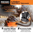Welcome Contact Us Add to Favorite Fast Shipping Hassle Free Return eBay Money Back Guarantee Authenticity Guarantee Features Portable car vacuum with power of a wet dry vacuum 3X its size Wet dry vacuum car cleaning kit includes 7 convenient tools Item Description Take on projects confidently with the 4 Gal. Portable Wet Dry Shop Vacuum featuring attachments, a fine dust filter and the RIDGID premium car cleaning kit. The RIDGID attachments (DUAL-FLEX hose, utility nozzle, car nozzle and extension wands) included with this compact 4 Gal. RIDGID wet dry vacuum provides a more customized and efficient cleanup. The 3 extension wands extend the overall reach, the locking hose with DUAL-FLEX offers uninterrupted cleaning and the utility nozzle is perfect for cleaning up large areas. This shop vac also includes an auto cleaning kit for vehicle detailing which includes pro-grade hose, claw nozzle, slim crevice tool, soft bristle brush and stiff bristle brush with adapter. When you need more intricate cleaning options for smaller areas, the car nozzle will do the job. The included 4 Gal. RIDGID shop vac is a small, lightweight vac that packs a punch with amped-up power and performance on the inside and a modern look on the outside. This vac has a 5.0 peak horsepower motor that can tackle even the messiest projects. The large rear wheels and casters provide great mobility over carpeted floors, thresholds, and rough floors at jobsites. This is an ideal vacuum for car cleaning and in-home tasks. Pro Tip: Add a RIDGID filter (sold separately) to a RIDGID shop vac to maintain the power of the vac and extend vacuum life. Add a RIDGID dust bag (VF3501 - sold separately) to the shop vacuum to help keep drum clean and for quick pickups. Air Volume (CFM): 110 Amperage (amps): 9 Blower Port: Included Color Family: Oranges/Peaches Cord Length (ft.): 20 Cordless/Corded: Corded Debris Type: Cold Ashes,Dust Mites,Fine Powders,General Debris,Mold,Pollens,Sawdust Filter Type: Cartridge Included Accessories: No additional accessories included Power Source: Electric Product Weight (lb.): 18.32 lb Recommended Surfaces: Auto Interior,Bare Floor,Carpet,Concrete,Laminate,Leather,Stairs,Tile,Upholstery,Vinyl,Wood Returnable: 30-Day Tools Product Type: Vacuum Vacuum Maximum Capacity (Gallons): 4 gal Voltage (V): 120 Wet/Dry Attachment & Accessory Type: Vacuum Hose Diameter (in): 1.875 in Hose Length (ft.): 17 ft Peak Horsepower (php): 5 Product Depth (in.): 14.25 in Product Height (in.): 14.5 in Product Width (in.): 20 in About us Customer service is our top priority! Please be sure to read the description thoroughly to make sure that this is the item you want before making a purchasing decision. If you have any questions about this item, please contact us via eBay messages before placing your order. We make every effort possible to accurately describe and depict the items. Please be aware that slight variations in color may be due to differences in lighting and computer monitor resolutions. All items are in stock at the time of listing; however, in the unlikely and unforeseen event that we are unable to fulfill your order through any of our networked warehouses, we will notify you as quickly as possible and offer you a 100% refund on your purchase. Thank you for shopping with us. We appreciate your business! Payment PayPal is our preferred method of payment. If you do not have a PayPal account, all major credit cards are gladly accepted through PayPal as the payment processor. PayPal offers great buyer and seller protection. Your order will be processed pending receipt of cleared payment through PayPal. Sales tax may be charged depending on your location. Shipping We provide fast, free shipping. Most items are shipped within 3-5 business days of receiving cleared payment. We ship to the lower 48 contiguous United States only. We do not ship to P.O. Boxes or APOs. For select items, we ship internationally through eBay?s Global Shipping Program. We do ship most of our smaller items internationally using eBays Global Shipping Program. If ordering electrical items outside of the U.S., please note that they will come equipped with a standard U.S. voltage plugs. You will need a suitable adapter to use the item in your country. Certain restrictions apply. Standard or Economy Shipping is ALWAYS FREE! You will be notified via eBay messages as soon as your items ship. Special Notice for Freight Items: If an item ships via Freight (Truck) Delivery, a valid phone number will be required so that we can contact you to schedule delivery. The item may be delivered with curbside delivery. An adult signature will be required. Please be sure to have available help on hand to assist you with moving the item to the desired location in or outside of your home. Freight items must be inspected upon delivery. In the unlikely event that damaged is observed, you MUST refuse delivery and note the damage on the shipping receipt and send it back via the Freight carrier. Returns will not be accepted on Freight items after they have been delivered, inspected, and the driver has left the premises. Returns We offer a 30 day return/exchange policy for most of our products. You can request a refund if you are dissatisfied for any reason with your product. (Restocking Fee May Apply). Only factory defects are accepted as a reason for a return. In the case of factory defects, if available, we will replace the product for you. When returning an item, it must be in all of the original packaging and include all of the original accessories or items that came with it. The item and package should be in original and perfect condition. You will be required to cover shipping on the return of non-defective items. All returns MUST be done within 30 days of date of purchase. Please note that we cannot give refunds or replacements after the 30 day limit has expired. When sending in a return, please note that it can take up to 7 business days for the return to be proces