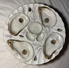 What I have up for auction is a royal Vienna oyster plate it is white and gold with purple running through it a reef scene, there are 4 wells and the back is marked 703/xL7 REGISTIRT. I believe This plate is 19th century. Dimensions: 8 1/4th wide 8 3/8ths long and a inch inch and 1/4th tall Condition: No cracks chips or any flaws it is in good used condition PLEASE LOOK AT PICTURES FOR FURTHER DETAIL SOLD AS IS