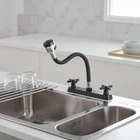 The valves are 8 inches apart for standar rv sink Design for faucet, chrome finish, ABS made main body, Silicone arch Package Includes Faucet 24 inch (60 cm) long Hot & Cold Water Hoses Mounting Hardware Movable and Bendable: The RV kitchen faucet designed with 360 degree rotatable tap head and flexible arch allow the rv faucet to rinse the entire sink! It is very easy to move and bend to any spot in the sink and quick to change from a spray to a stream Sleek Design for RV Sink: RV kitchen sink faucet is constructed of silicone arch and lightweight ABS plastic 8-inch body, replacement faucet for RVs, motorhomes, campers, trailers; Black finish easy to match most sink Versatile Water Flow: Enjoy the convenience of two water flow modes: Shower Mode and Bubbler Mode. Easily switch between the two modes for different washing tasks. Enjoy a comfortable and customized washing experience with just a simple turn of the knob. Easy Temperature & Flow Control: The classic cross knob switch design provides effortless operation and allows you to easily adjust the water temperature and flow according to your preference. Easy Installation: Camper faucet kitchen with 1/2 threaded male inlet shanks; Compatible with most standard RV kitchen sink; Easily install without plumber
