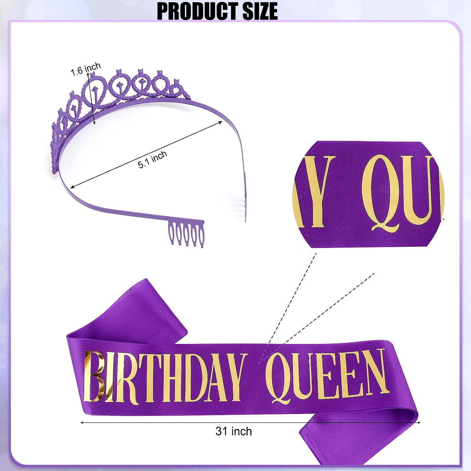 Rabbmall Purple and Silver Birthday Decorations for Women Girls Lavender Party Decor Set with Happy Birthday Banner and Balloons, Sash and Crown, Curtains, Cake Topper Table Cloth All-in-one lavender theme purple birthday party decoration saves a lot of your time and energy in hunting around various online shop. Add the beautiful purple and silver color will add more romantic and festive atmosphere for your birthday party. What in your party balloon packs: 1) HAPPY BIRTHDAY paper banner (1set) 2) light purple pompom flower – 3 pcs, 10 inch 3) silver pompom flower – 3 pcs, 10 inch 4) purple latex balloons – 10 pcs, 12 inch 5) light purple latex balloons – 10 pcs, 12 inch 6) purple cofetti latex balloons – 5 pcs, 12 inch 7) silver latex balloons – 10 pcs, 12 inch 8) star- shaped foil balloons – 2 pcs , 18 inch 8) heart- shaped foil balloons – 2 pcs , 18 inch 9) foil fringe curtains – 2 pcs 10) princess crown and birthday queen sash 11) cake topper – 1 pcs 12) plastic tablecloth – 1pcs, 4.5X 9ft 13) Accessories: 1 x straw, 1 x ribbon, 1 x glue dot Purple Birthday Decorations for Her : Lavender purple decor is suitable for women and girls of most ages: 21st, 30th, 40th, 50th, etc. It look romantic and mysterious after assemble, your families, friends will have a unforgettable memories! Great Value Box: 1 set purple HBD banner, 2pcs tinsel foil fringe curtains, 40pcs latex balloons in purple and silver, 4pcs foil balloons, 6pcs pom poms, 1 princess crown and birthday queen sash, 1pcs cake topper, 1pcs plastic tablecloth. Premium Quality Balloons: These birthday balloons are made of ECO-friendly Foil and rubbery, safe and non-toxic, strong and long lasting, support helium and air. Note: Please DO NOT overfill the balloons,suggest inflate to 85%-90%. Characteristic Birthday Party: The crown and sash specifically designed for the birthday queen, she will get a big hit! A lot of details like tablecloth, cake topper, Curtains and balloons will fill the room with luxurious-look purple. Customer Service: We support refund or resend for any missing or damaged parts in your package and offer LIFETIME WARRANTY! If you have any problem or you need help, please feel free contact us via order page, we will solve it for you. Shipping from the USA All of our products are shipped from the USA, ensuring quick delivery to your destination. Payment We offer the following payment methods: PayPal, credit card, bank transfer, and eBay's secure payment system. Free Shipping & Free Returns Shipping within the USA is FREE. Additionally, any return is absolutely free for you. Risk-Free Purchase You have the option to return an item within 30 days without any justification. We cover the return shipping costs! Fast Shipping We ship immediately upon receipt of payment. Generally, the package is delivered within 2-3 days in the USA. If it takes longer, we will contact you. Quality and Costs Made in Europe, USA, China No customs fees or additional charges Total satisfaction guarantee Invoice with declared VAT available upon request in .pdf format Feedback Your feedback is very important to us. After you pay for your purchase, you will automatically receive positive feedback from us.