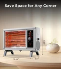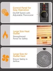 Small body and lightweight. You can easy to storage the small heater and use many years. Radiant heater fast heats cold air directly and silent. No any disturb sleeping, working, reading etc. And infrared heater is skin friendly. No dry your skin after long time use. This Radiant Heater adopts an overheating protection design. When it detects that the temperature is abnormal, the internal protection measures will be turned on and the product will be automatically turned off to avoid more accidents The heater has 2 heat settings: 1250 and 1500 watts. Use the higher setting(1500 WATT) to raise the room temperature quickly. When the desired temperature is reached use the lower 1250 WATT setting. It is usually sufficient to maintain a comfortable temperature. For any reason if you are unhappy with heater, just contact us please. We’ll either refund for you, send you a replacement or work with you for a happy shopping experience. Specifications: 1250/1500W Two Heating Settings Built-in Thermostat from Low to High Tip-over Protection for Safety Built-in Over Heating Protection Portable Handle for Easy Carry Lightweight - 5.4lbs Oversized Air Vent Stable Bases - Easy disassembled for storage