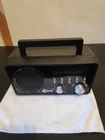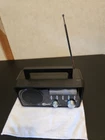 This is a vintage RadioShack portable radio in black color, model number 1201178. It is an AM/FM radio with weather band capabilities, powered by both AC and DC sources. The radio is in excellent condition and is in good working order.