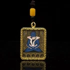 ~~ Buddha Shakti Thangka Pendant~~ Pendant thangka are believed to bring internal peace and good luck within one and family. Buddha Shakti is deep blue in color, symbolizing the sky or emptiness of mind. Samantabhadri or buddha’s consort is white in color, symbolizing the aspect of the clarity of our mind. The male female of Adi Buddha in union depict the unity of emptiness and cognizance. Samantabhadri is completely nude and while not ornaments symbolizing that she is free from all thought constructs. It means that enlightenment can be realized only when we are free from thought constructs and one perceives the empty nature of the mind directly. [Size = 4.5cm x 3.5cm] Material Used for Thangka Art: • Cotton Canvas • Natural Pigments and colors • Gold leaf ~Genuine 100% hand-painted from Himalayas Please feel free to contact me if you have any question regarding the painting.