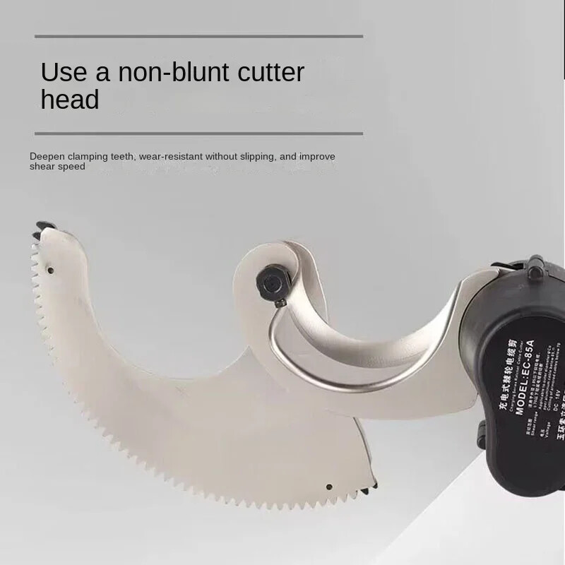 18V El ectric Ratcheting Cable Cutter Light Fast Cutting of 50Mm/85Mm Cable Gear Scissors Armored Cables Steel Core Aluminum Model EC-55A Cordless Ratchet Cutter Cut material copper aluminum wire Voltage DV18V Charging time is about 2 hours Approximately 100 times of use (1 charge) Weight 3.6kg (with battery) The cutting range is suitable for cutting copper and aluminum cables with an outer diameter of less than φ50 and armored cables. Model EC-G-55A Cordless Ratchet Cutter Cut material steel strand Voltage DV18V Charging time is about 2 hours Approximately 100 times of use (-- one charge) Weight 3.6kg (with battery) The cutting range is suitable for cutting steel core aluminum stranded wires below 1000mm, steel core cables below φ50mm and steel strands below 100mm. Model EC-75A Cordless Ratchet Cutter Cut material copper aluminum wire Voltage DV18V Charging time is about 2 hours Approximately 100 times of use (1 charge) Weight 3.6kg (with battery) The cutting range is suitable for cutting copper-aluminum cables and armored cables with an outer diameter of less than φ70mm. Model EC-85A Cordless Ratchet Cutter Cut material copper aluminum wire Voltage DV18V Charging time is about 2 hours Approximately 100 times of use (1 charge) Weight 4.0kg (with battery) The cutting range is suitable for cutting copper-aluminum cables with an outer diameter of φ85mm or less, and armored cables with an outer diameter of φ70mm or less.