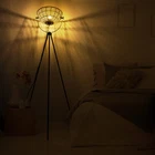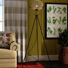 Rattan Wicker Tripod Floor Lamp - Boho Mid-Century Standing Lamp for Living R...
