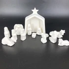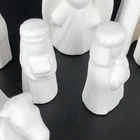 This vintage set of 14 ready-to-paint miniature ceramic bisque figures is perfect for any art enthusiast. The intricate details of the nativity scene make it a beautiful and unique addition to any collection. Crafted by hand in the United States, these original pieces are perfect for those who appreciate handmade art. The set includes everything you need to create a stunning nativity scene. Get ready to unleash your creativity and bring this beautiful nativity scene to life!