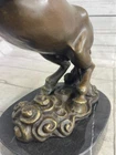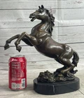 Rearing Stallion Horse Bronze Sculpture Statue Equestrian Horses Decor Artwork Rearing Stallion Horse Bronze Sculpture Statue Equestrian Horses Decor Artwork Condition : This sculpture is in perfect condition. Bronze Dimensions with Marble Base: Height 12" x Width 12" Marble Dimensions: Diameter 6.5" Height without base: 11" Weight: 12 LBS Inventory: 62YDW0916226 Experience the raw energy and untamed spirit of a rearing horse with this striking bronze sculpture. Frozen in a moment of both fear and excitement, the horse's powerful physique is on full display as it rears up on its hind legs. With its mouth agape, a thunderous neigh echoes through the air, serving as both a warning and a testament to the animal's wild nature. Captured in exquisite detail, this 100% bronze sculpture was painstakingly crafted using the age-old lost wax method. Every sinew and muscle of the horse's body is meticulously rendered, preserving the authenticity of this iconic equine pose. Mounted upon a sleek black marble base, the sculpture exudes a sense of strength and elegance, making it an ideal addition to any art collection. The signature of the esteemed artist, P.J. Mene, adorns this sculpture, reaffirming its quality and artistic value. This bronze masterpiece is not only a stunning representation of a rearing horse but also a symbol of the untamed spirit and primal beauty found in the animal kingdom. Display it proudly in your home, office, or gallery, and let it serve as a powerful reminder of the majestic and awe-inspiring world of horses. Rearing Horse Trainer Equestrian Artwork Art Bronze Marble Statue Sculpture Sale www.bronzhaus.com Video will open in a new window Using the eBay App? Paste link into a browser window: [isdntekvideo] Shipping Terms : Most of our items are shipped via USPS (United States Postal Service) mail or UPS. Most orders are shipped within 24-48 hours of purchase. Please be aware that not all items are available for USPS shipping due to size and weight. We do ship to Hawaii, Alaska, Canada, Puerto Rico, APO/AE, and U.S. Virgin Islands, however, an additional charge may be required. Please contact us before making any purchases in these areas. For Non-USA customers, you may be responsible for all duty, tax, brokerage fees that may be due upon delivery (shipping costs cover freight charges only). We also ship internationally. Please refer to the "Shipping and Handling" chart for the rates for each area. Payment : We accept just about any form of payment. PayPal, Master Card, Visa or American Express credit cards. Money orders, cashiers checks, and even personal or business checks. For governmental institutions, we will also accept a purchase order. Please understand that for personal or business checks we have to wait for the check to clear (usually 7 days) before shipping. Condition : New Detailed Hand Crafted Hot Cast Bronze Satisfaction Guaranteed. This is Stock Photo, Slight Color Variation!! Listing and template services provided by inkFrog
