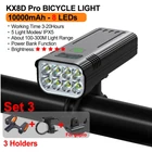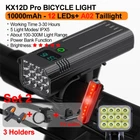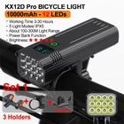 12 LEDs Bicycle Light Max 5000LM Digital Indicator USB Rechargeable Flashlight for Bike Headlight 18650 Battery MTB Cycle Lamp 【SUPER BRIGHT BIKE LIGHT TO KEEP YOUR SAFE】 adopt of extra bright LED bead for hndgtyr bike lights set, provide more than 300+ feet beam length ,You will be shocked and amazed at how bright it is! three light modes- High light, strobe mode and low light .so you can see clearly no matter on a urban road or on a dark lonely country road, excellent to keep you safe at night. 【Battery Power Display & 360° Rotation】 The Bicycle Front Light is designed with battery power display function, showing the actual time of remaining battery, which can help you to master the usage and charging time more conveniently. Moreover, the natfire mount bracket for the headlight is 360° rotatable, allowing you to adjust to the suitable angle according to actual situation during cycling. 【USB RECHARGEABLE】 Save your time to replace batteries every week. Never waste money on batteries anymore. HNDGTYR bike light and optional red rear light come with a CHARGING CABLE that charges from your computer, power bank or any device with a USB port. Built-in intelligence IC can prevents overcharge or over discharge and extend battery life. (Depends on the battery you choose, larger battery capacity, longer runtime) 【WE THINKING MORE FOR YOU】 No any tools needed making it easy to install. Easily mounted and secured with the adjustable mount. it's very easy to take off from bike for recharge and prevent thieves for stealing, portable design for rechargeable bicycle headlights.Water resistant rated to IPX5 - Protected against splashing water from any angle. hndgtyr Product Parameters Model: Bicycle Light HKX Material: Aluminum shell Mode: 3-5 Modes Working voltage: 5V Waterproof: IPX5 Battery:5200-10000 mAh Surface craft: Abrasion resistant anodizing Tips: If you do not use it for a long time, please charge it every three months. Do not shine into the eyes. Keep away from flammable and explosive materials. Waterproof grade is IPX5. Do not immerse the bicycle light in water. Place the bicycle lights correctly. Keep out of reach of children to avoid accidents. HNDGTYR gives you a better riding experience The HNDGTYR KX12D bike light will help you to see the road better when riding at night, both in the suburbs and in the city. Say goodbye to small stones, speed bumps and potholes in the middle of the road! Optical design for a safer ride Good light effect, even light distribution and long irradiation distance. Can effectively eliminate glare, no blinding to the view vehicle pedestrians, protect the safety of both sides Power bank design It's more than just a bike light! Don't worry when your phone runs out of battery on outdoor rides, this bike light can charge your electronic devices! IPX5 rated waterproof design Gives you the freedom to ride unrestricted. Fearless of the elements! 5 Light Modes of Headlight High / Medium / Low / Flash / SOS Comes with a 360 degree swivel bracket Adjustable bike light position at will.Suit for pipe diameter 20-36. 5mm The complimentary bracket is beautifully designed to make good use of handlebar space, allowing you to mount the bike light on the handlebars and freely adjust the rotation to the right lighting position, giving you a more stable cycling experience. ▼How to mount a light to a bike via a bracket? Watch this video▼ Digital screen display function You can see in real time the remaining battery capacity and the remaining usage time of the light USB Charging Output Not only is it a bike light, but it's a power bank! Even when riding outdoors, you don't have to worry about running out of battery power for your phone. This multi-functional bike light will both light up the road for your night ride and provide charging for your electronic devices! TYPE-C fast charging Built-in lithium battery charging protection circuit, automatically stops charging when fully charged Ergonomic design Sleek and beautifully designed, easy to grasp with one hand Digital display design Equipped with a digital display that allows you to see the remaining battery level in real time When charging, the green light breathing . After fully charged, the green light keeps on When power is sufficient,the green light keeps on . When power is insufficient, the green light breathing Equipped with two 21700 batteries Built-in overcharge and overdischarge IC to extend battery life Power indicator: green LED for full power, green LED for weak power Multi-angle display A02 Tail light option Charging input: 5V / 1A (Do not use 9V charger. lt may destroy the tillight) Power supply:One 18650 battery Battery capacity:1200mAh Irradiation distance:100- 1500 metres Light beam angle:120 degtee Waterproof rate:IPX5 (Small rain, Splash water) Charging time:2.5 hours Continuous use:50 hours time