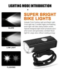 Bike Light Set Bicycle Headlight Taillight Rechargeable Front and Rear Set MTB Bike Flashlight Cycling Lamp Bicycle Accessories 【Specifications】 Bike Front Light Front light color: Black Bulb Type: LED 3 Working Modes: High-Medium-Strobe Power Source: 800mAh Li-Poly Battery Charging Time: Approx.3hours Bike Rear Light 4 Working Modes: Long Bright, slow flash, explosion flash and strobe. Bulb Type: LEDs Brightness: 15 lumens Material: PC + ABS Light Source: XPE 3W LED Tail Lights Color: Red Output (Maximum): 300lm Lighting Distance: 30-50meters at night Mounting Placement: Bicycle Seat Post Suitable Tube Diameter: Approx.12-32mm