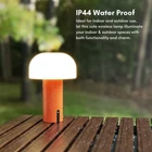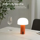 Rechargeable Orange Mushroom Lamp, Cordless LED Table Lamp 4000mAh Battery Operated Touch Dimmable Table Lights, Portable Wireless IP44 Waterproof Lamp for Home & Outdoor, Shower, Patio Product Details Base Material: Metal Product Dimensions: 6.1"D x 6.1"W x 9.06"H Lamp Type: Table Lamp Shade Color: white Switch Type: Touch Product Dimensions : 6.1 x 6.1 x 9.06 inches; 1.08 Pounds Item model number : CMLO Batteries : 1 Lithium Ion batteries required. (included) Date First Available : April 6, 2024 Manufacturer : UEHICT Country of Origin : China Customer Reviews: 4.5 4.5 out of 5 stars 24 ratings Base Material: Metal Product Dimensions: 6.1"D x 6.1"W x 9.06"H Lamp Type: Table Lamp Shade Color: white Switch Type: Touch Style: Modern Brand: UEHICT Color: Orange Special Feature: Dimmable, Waterproof, Cordless, Rechargeable, Color Changing Light Source Type: LED Material: Metal Room Type: Kids Room, Bedroom, Living Room, Deck, Dining Room Recommended Uses For Product: Decoration, Reading, Power Outage, Camping, Hiking Power Source: Battery Powered Shape: Mushroom Number of Light Sources: 1 Included Components: Lamp Body Is Waterproof: True Number of Items: 1 Lighting Method: LED Control Method: Touch Indoor/Outdoor Usage: Outdoor, Indoor Specific Uses For Product: [INF1, INF2, INF3, INF4, INF5, INF6, INF7, INF8, INF9, INF10] Water Resistance Level: Waterproof Installation Type: Freestanding Is Cordless?: Yes Manufacturer: UEHICT Part Number: CML Item Weight: 1.08 pounds Country of Origin: China Item model number: CMLO Batteries: 1 Lithium Ion batteries required. (included) Special Features: Dimmable, Waterproof, Cordless, Rechargeable, Color Changing Batteries Included?: Yes Batteries Required?: Yes Date First Available: April 6, 2024 PORTABLE CORDLESS LAMP: Say goodbye to tangled cords, UEHICT baterry mushroom lamp offers a hassle-free experience, IP44 waterproof makes it more versatile and works anywhere you want to take it. Whether it's left on the stairs for ambient light, placed in the bathroom for a soft alternative to harsh overhead lighting, or utilized by your toddlers during playtime in their tent - this portable lamp will proven itself indispensable AESTHETICALLY APPEALING: This rechargeable orange mushroom lamp gives off a very nice and warm glow which is very gentle to the eyes,. The mushroom design is where this lamp's charm comes to life. Not just a source of light, it's a decorative piece that adds a touch of elegance to your indoor and outdoor spaces. When it is not lit up, it looks like a really nice sculpture, such an eye candy for home! DECENT QUALITY: UEHICT outdoor rechargeable table lamp is solid built with metal body, which is sturdy and durable to resist rust and wear. Its thick frosted globe creates a soft diffused light and won't shatter if knocked over. Built-in 4000mAh rechargeable battery could last for 8-16 hours after 4-6 hours charging. Even while recharging you can immediately use it. It's great to have as a backup light source during a power outage. STEPLESS DIMMING & 3 COLOR TEMPERATURES: This wireless mushroom lamp provides decent light and is dimmable at the touch of a button on the side. One touch to turn on/off and cycle through different color temperatures, hold touch to bright or dim the light, So smooth when adjusting the brightness, and you don't have to hear that click sound on and off. It's not just a technological perk, but a way to customize the ambiance. 100% SATISFACTION GUARANTEED: Let this cute waterproof cordless lamp illuminate your indoor & outdoor spaces with both functionality and charm, such as gracing your patio, lighting up a camping trip, or enhancing an al fresco dining experience. We stand behind our products. Any questions, please do not hesitate to contact us, we'll make you 100% satisfied.