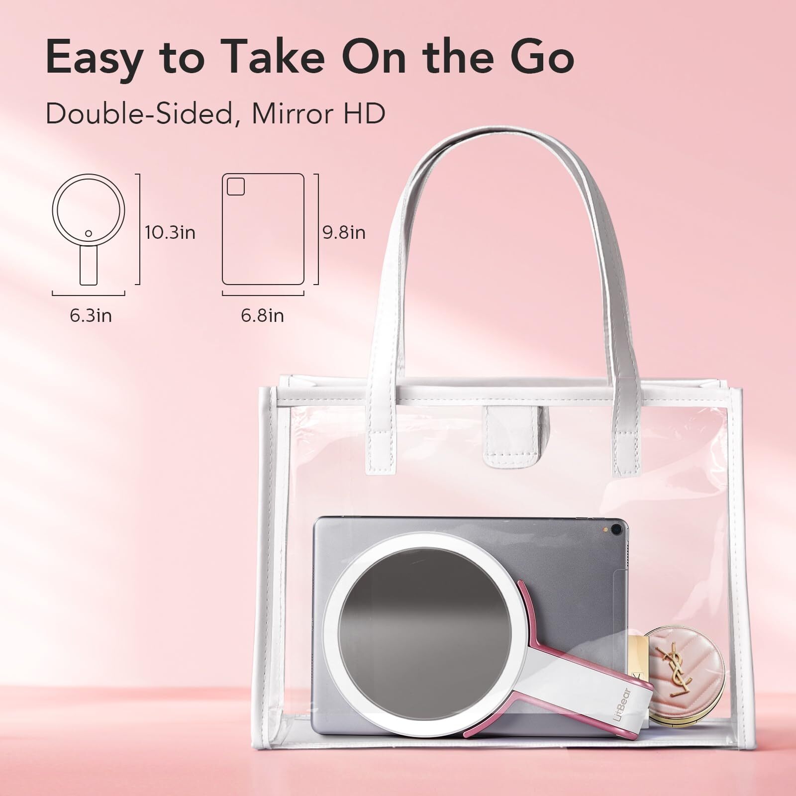 β¨ Travel Makeup Mirror with Lights, Rechargeable Double Sided 10X /1X Magnifying Mirror, Portable Lighted Beauty Mirror, 3 Color Lighting, Dimmable Touch Screen, Tabletop Handhold Hanging β¨ π Product Overview π₯ Key Features Powerful Light Brightness & 3 Color Light- This lighted makeup mirror is surrounded by 56 pcs bright LED lights that can give you great assistance for for your makeup, giving you a perfect viewing while applying makeup in dark or poorly lit areas. With 3 color lights to pick from, warm light, nature light and white light 3 color lights, you can choose any light according to your needs. Bright light without glare, can protect your eyes 10X Magnification /1X HD Double-side Mirror- This is a 10X/1X double-sided lighted travel mirror with high-definition, smooth mirror surface. 1X light up mirror is suitable for overall makeup and daily skin care. 10X magnifying mirror can view more details for makeup, such as to apply mascara, lipstick, blackhead/blemish removal, draw eyeliner, ensuring no more embarrassments or small imperfections. NOTICE: When you use a 10X magnifying mirror, please keep the mirror 4 inches or even closer to your face Dimmable Lighting and Smart Function- The mirror has highly sensitive touch control. Long press to adjust brightness between 10% to 100% and touch to switch the light color. It features a brightness memory function and a 30-minute auto-off timer which is convenient for your everytime use Lightweight & Potable Travel Mirror- The mirror itself is only 1.0 pounds, 5.3 inches in width and features a flexible foldaway handle, making it easy to packed in a bag or store in a luggage. Sufficient for makeup application and touch-ups for commute and 2-3 day business trip. The lighted makeup mirror is bright enough for daily use on vanity while it only takes up a small space Rechargeable & Versatile Usage- The makeup mirror has a built in large capacity 1200mAh battery, which can be available at any time through charged by a laptop, mobile power supply or charger via Type-C USB for charging, no worry about replacing batteries. The cosmetic mirror can be used as a hand mirror, desktop mirror, hanging mirror or for daily travel Great for Women- 3 IN 1 Makeup Mirror can be an ideal present for mom, girlfriend, wife, etc. on Valentine's Day, Mother's Day, Christmas, New Year, and other special festivals π¦ Shipping Information We ship to the address provided on eBay. Please ensure your address is correct before ordering. Orders will be processed within 1-2 business days. Typical delivery time is 3-7 business days, depending on your location. If you encounter any issues, please reach out to us immediately. π Return Policy Returns are accepted within 30 days of receipt. Please ensure the item is returned in its original packaging and condition. π³ Payment Methods We accept PayPal and all major credit cards for your convenience. π Contact Us If you have any questions, feel free to message us through eBay for prompt support.