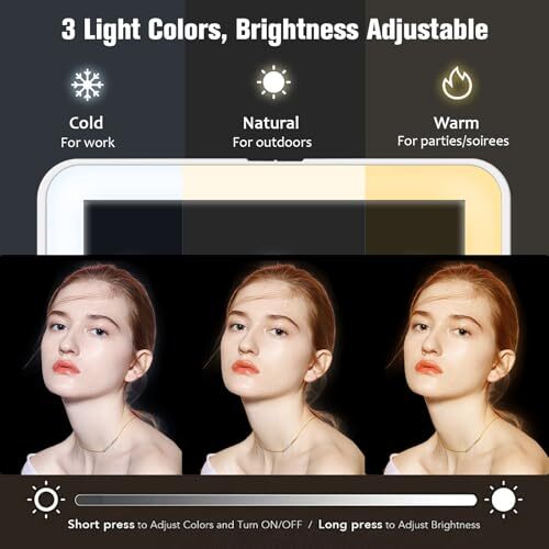 This travel makeup mirror is a game-changer! The 72 LEDs provide perfect lighting with 3 adjustable color modes, and the dimmable touch screen makes it super easy to use. It’s compact, rechargeable, and folds neatly—ideal for travel or home. The brightness is just right, and the mirror itself is crystal clear. Love how portable and stylish it is! Highly recommend for anyone who wants flawless makeup application anywhere.