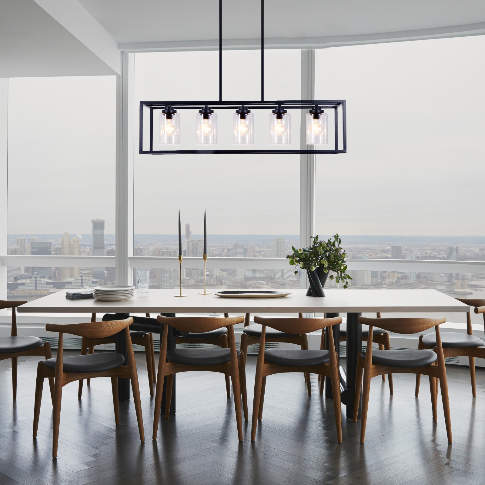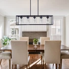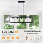 Rectangle 5 Lights Ceiling Chandelier Pendant Lighting Fixture Kitchen Island About this item 【Modern Farmhouse Design】This 5-light rectangular black kitchen island chandelier is designed with an open metal rectangular frame, making the light fixture look more fashionable and elegant. This linear light fixture pendant is great addition to your living room, kitchen island, dining room, hallway. 【 Bulb Requirements】Modern linear rectangular cage hanging light fixture needs 5 × E26 base bulbs. Fully dimmable when used with dimmable bulbs and compatible dimmable switches(Bulbs and dimmable switches not included, MAX 60W). 【Height Adjustable Kitchen Island Lighting】 After installation, the modern industrial rectangular chandelier Length:37", Height:33"(Including 4Pcs 11.8" adjustable rods). You can adjust the dining room chandelier light fixtures rod's length as your required. 【Widely Used Dining Room Light Fixture】The black kitchen island light is suitable for dining room, kitchen island, bar, living room, balcony, porch, corridor, loft, farmhouse, craft room, entryway, foyer, office, etc. Chandeliers for dining room will increase the charming ambiance in any space in your home. 【Dining Room Light After Sales】The industrial chandelier only takes a few minutes to installation. This farmhouse hanging light fixture is highly recommended to professionals. If you have any questions about island lights for kitchen, please send us a message as soon as possible! Details: Color: Black Full installation Dimensions: Length:95cm/37", Width:23cm/9", Height:85cm/33.5" Sockets: 5*E26 bulb sockets.(Bulbs not included). Voltage: 110V-220V Materials: metal+glass Applicable: living room, bedroom, restaurant, etc. Packaging details 1 * light pack in foam carton box.(Neen assembly) Suggestion: Installation By A PROFESSIONAL ELECTRICIAN Assistant after sales: For any question or installation methords about the light fixture,pls contact us via ebay message firstly for help. Payment Delivery details Terms of sales About us Contact us Payment You could make payment via: Delivery details Packages will ship via by UPS or USPS within our handling time,once the package is shipped out ,normally shipping takes about 3-10 working days,but due to different cities and states,shipping time will be different. Terms of sales If you any problem about shipping information, or the item you got : Arrived damaged; Wrong item sent; Missing parts or pieces; Doesn't work or defective; Doesn't match description or photos. Pls click "Contact Seller" and send us message firstly. Then we could have a check and will take responsibility to resolve the problem with you in good communication. About us Our company specializing in selling all kinds of light fixtures,such as ceiling fans,chandeliers,crystal lights,retro lamps,pendant light,etc. If there's any light fixture you are interested,pls feel free to contact us for more details. Contact us Normally your message will be replied in 1 business day,If after 24 hours you do not receive our reply,please kindly re-send us the message,because sometimes ebay message system will have technical problem,so your message can't send to us successfully.