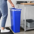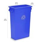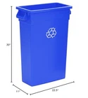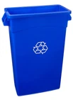 These efficient Trash Cans hold 23 gallons of waste but protrude less than a foot from the wall! They are used in schools, offices, restaurants, healthcare, and more. Great for use in tight spaces! The smooth, seamless design provides prolonged life and promotes easy cleaning. Molded-in handles provide a secure area to grasp and make moving and carrying easy. A recessed hand-hold area on the base aids in lifting and dumping. A molded-in bag cinch eliminates the need to tie knots in poly liners. Constructed of Linear Low-Density Polyethylene, these commercial trash cans are made to withstand years of rigorous use and abuse. Trash cans will nest for storage when empty. Compatible with the 23 gallon Double Flip Lid for Slim Trash Can 23 gallon narrow profile trash/garbage can with recycle logo for use in commercial environments Appropriate for offices, public spaces, restaurants, schools, hospitals, and other high-traffic areas Durably made with heavy-duty, linear low-density polyethelene plastic that stands up well to every day use Molded in bag cinch eliminates the need to tie knot in poly liners Heavy-duty side handles and bottom grip for easy dumping True color molded plastic doesn’t fade over time