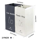 Recycling Bin, Separate Large Recycle Bins for Kitchen - Light Gray and Black Product Details Product Dimensions : 11.8 x 11.8 x 0.05 inches; 10.56 ounces Item model number : 2 Pack JIALAI HOME Recycle Bins Manufacturer : DONGGUAN JIALAI TRADING CO., LTD Country of Origin : China Brand: JIALAI HOME Capacity: 54 Liters Color: Light Gray and Black Opening Mechanism: Open-Top Material: Polypropylene, Plastic Recommended Uses For Product: Indoor&Outdoor Room Type: Rectangular Special Feature: Double Stitch Handle Strap, Special Adhesive Velcros Shape: Rectangular Finish Type: Painted MULTI-PURPOSE: Please insert black plastic stripes under the handles. Those actually keep bags in shape and you have to insert them before use.It is not only recycle bin, but also laundry basket. The color of the indoor recycle bag is composed of light gray and blacl color. It is very natural and coordinated. Spacious 2 compartments allow you to neatly organize all recycling waste,great for kitchen, home, office, garages. Their easy care makes them a great choice for garden clean up or waste bins DURABLE AND 100% WATERPROOF: Indoor recycling bins for kitchen made of a light and durable woven Polypropylene fabric which makes the household recycling bin reusable, waterproof and easy to clean. And the high-quality laminating processing makes the color of the bag very natural, bright and fashionable MULTI-FUNCTION DESIGN IN STYLE: The recycle bag clean look, efficiently to handle your waste and recyclables, perfect refuse solution, for sorting recyclables, compost, and other garbage. This product is designed to enhance aesthetic appearance of your home kitchen and office. Easy to recognize colors make it easy for adults and children to sort correctly and neatly other garbage DIMENSIONS: 11.8L x 11.8W x 23.6H(inch), 30L x 30W x 60H(cm). Set of 2 recycle bins classic colors and durable materials for use in offices, kitchens, bedrooms, storage rooms and more, and to keep these areas clean. They are deep enough to take a week's worth of recyclables for you. It is perfect for large families or offices