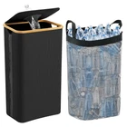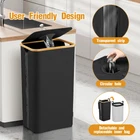 Recycle Bins for Kitchen: The size of recycling bin is 13x16x29.5 in, with a capacity of 100L (26 gallons); It can accommodate around 30 empty bottles and has been tested to have sufficient load-bearing capacity; It can be placed in kitchens, living rooms, garages, etc High Quality Materials:Recycling bin with lid is made of high-quality Oxford cloth; The lid mouth is made of polished bamboo, which is not easy to collapse; The bottom is made of sturdy density board, and the four pillars are elastic fiberglass rods; It is very lightweight and easy to move User Friendly Design: There is a 6-inch diameter hole in the middle of the lid, which allows for the direct placement of waste without the need to open the lid, while also preventing pets from entering; The side of recycle bin with lid is designed with a transparent strip, which allows for a clear view of the remaining capacity of the kitchen recycling bin Easy to Assemble: Simply insert 4 white rods into the black bag, seal with Velcro, and secure the 4 corners of the mesh bag with cow horn buckles to complete the kitchen recycling bin's installation; Please refer to the step-by-step diagram for specific operations Easy to Clean: The recycle bin's inner bag is very lightweight and can be cleaned by rubbing with water; It only takes a very short time to dry; The outer cover should be rinsed and wiped clean with water before naturally drying; Please note that it cannot be machine washed; To avoid bacterial growth, try to empty any residual liquid before throwing away waste