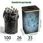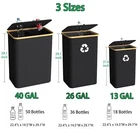 Recycling Bin for Kitchen Indoor Home, Large 26 Gallon 100L 26 Gallon, Black Product Details Product Dimensions : 29 x 16 x 13 inches; 3.46 Pounds Item model number : 26 Gallon Manufacturer : Pakusane Brand: Pakusane Capacity: 26 Gallons Color: Black Opening Mechanism: flip cover Material: Nylon Recommended Uses For Product: Recycle Room Type: rectangle Special Feature: Cleanroom Shape: Rectangular Finish Type: Unfinished Convenient Recycling No need to use hands to open or close the lid, only one hand is needed to insert the bottle. Large CapacityThe 26 Gallon Size could hold max up to unsqueezed 35 empty plastice bottles.You can also choose the 13-gallon size for under-the-table use. Collapsible DesignIt's super easy to assemble, just insert the 4 white rods into the 4 black long straps comes frome the 4 corners of the bottm. Waterproof & SturdyMade of thickened oxford cloth with special coating, It is strong, wear-resistant. The bamboo handle is rust-resistant and lightweight. Most stains can be cleaned by wiping the surface with a rag without rinsing with water. Reusable Inner BagThe inner bag is made of recycled materials, making it 100% environmentally friendly.It is also machine washable. Fastened to the four corners with horn buckle, you can easily remove it and take it to a recycling site.