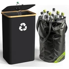 Recycling Bin for Kitchen Indoor Home, Large 26 Gallon 100L Recycle Bin with Lid ,Black Convenient Recycling No need to use hands to open or close the lid, only one hand is needed to insert the bottle. Large CapacityThe 26 Gallon Size could hold max up to unsqueezed 35 empty plastice bottles.You can also choose the 13-gallon size for under-the-table use. Collapsible DesignIt's super easy to assemble, just insert the 4 white rods into the 4 black long straps comes frome the 4 corners of the bottm. Waterproof & SturdyMade of thickened oxford cloth with special coating, It is strong, wear-resistant. The bamboo handle is rust-resistant and lightweight. Most stains can be cleaned by wiping the surface with a rag without rinsing with water. Reusable Inner BagThe inner bag is made of recycled materials, making it 100% environmentally friendly.It is also machine washable. Fastened to the four corners with horn buckle, you can easily remove it and take it to a recycling site. 12.99 "h x 16.14 "h x 13.0 "h. Weight: 0.0 grams Item model number 26 Gallon Room Type Kitchen Capacity 26 Gallons Color Black Product Dimensions 16.14"L x 12.99"W x 13"H Material Oxford Cloth, Bamboo Opening Mechanism 掀蓋式 Recommended Uses For Product Indoor Special Feature Removable Lid Size 26 Gallon