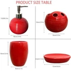 30 Days Return Policy Fast Delivery Trusted seller Red Bathroom Accessories Set,4 Pcs Ceramic Bath Accessory Sets Includes Soap Dispenser, Toothbrush Holder, Tumbler and Soap Dish,Bathroom Countertop Organizer Set for Home Apartment Product Description Ceramic 【4-piece Bathroom Accessory Set】: red bathroom accessories includes:1 lotion soap dispenser, 1 tumbler, 1 toothbrush holder and 1 soap dish, which can provide you with everything you need to organize toiletries and bath products, keeping your bathroom countertop tidy 【Safe and Durable Material】Our ceramic bathroom accessories set is handmade with high-quality ceramics, which is safe, healthy, sturdy and durable. The bathroom set has a smooth glaze and is easy to clean. Just rinse with clean water to ensure that your bathroom toiletries set is clean as new 【Exquisite Stripe Design】The red bathroom decor set adopts a modern stripe design, which is elegant and stylish. The ceramic soap dispenser with pump is suitable for hand soap, shower gel, lotion, etc. The bathroom toothbrush holder comes with 4 compartments to allocate space for your toothbrushes and toothpaste 【Ideal Gift】This bathroom toothbrush holder and soap dispenser set is suitable for any bathroom style and complements any bathroom environment. It can also be an ideal gift for housewarming, new home, wedding, Christmas, birthday, Thanksgiving or New Year 【After-Sales Guarantee】 Our bathroom sink set uses safe packaging, you don’t have to worry about receiving damaged items. If you are not satisfied with our bathroom set, you can contact us at any time. Our professional customer service team will serve you at any time to solve your problems to ensure your satisfaction Shipping Returns Payment Shipping Shipping is FREE to all addresses other than APO/PO boxes in the lower 48 states. All our stock ships from US-based warehouses. Shipped via USPS or UPS (depending on location and package weight) Unless stated otherwise, all orders will ship within 24-72 hours of your payment being processed. Check our feedback to see the great reviews of FAST shipping we offer. Returns As our valued customer, we will do our best to make sure the product you receive arrives to you on time and as expected. If you are not satisfied with your purchase, please contact us within 30 days of receiving your order to process a return. Payment We currently accept payment via eBay managed payments only. Once payment is cleared, we will dispatch your shipment within 1-3 business days. Please refer to the "Shipping" tab for more information regarding shipping speed to your destination.