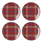 The Christmas table is ready for revelry with this radiant tartan made to match our classic Holiday dinnerware. Touches of gold elevate the celebration with a timeless shine that always makes spirits (and tables) bright. Material: porcelain 24K gold trim Dishwasher safe Microwave safe Includes (4) plates Each measures 8"Diameter x 1"H Imported
