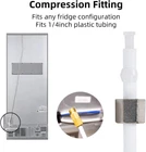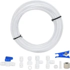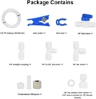♥【What You Get】The kit includes everything you need for the installation: 1×1/4"OD PE tubing,1×tube cutter ,5×connect fittings and 1×compression fitting set ,8pcs in total. ♥【Superior Quality】Food grade polypropylene PP material, made of real material, strong structure, safe and durable, quality is very guaranteed. ♥【Special Properties】RO tubing:low density polyethylene pipe, crack resistance, impact resistance, with super flexibility.Connector structure design is unique, interface sealing effect is strong. Crack resistant material, anti aging corrosion. ♥【Wide Range of Applicable 】Apply to reverse osmosis water filter system,liquid dispensers,refrigerator,ice maker,coffee machine and many other RO systems that need to be connected to transport liquids. ♥【Easy Installation】No tools required, Push fit fittings.Quick access intubation structure, installation without complex operation, plug and use. Product Description Feature: High quality food grade raw materials, health and hygiene is guaranteed, coupled with high strength material application technology, so that the fitting in the use of more safe and assured. The tube shall be inserted into the bottom of the interface during installation, and the tube sleeve of the interface shall be pressed tightly when pulling out.Non-Locking cilps connections,easy to use.(Individual connectors need to be locked using the blue card in the set) All types of connectors are available in the set combination, which can be used together according to actual needs. The connector is formed in one body and adopts quick access intubation structure to prevent leakage, durable and corrosion-resistant. Fast connection of the inline shutoff valve enables the user to stop the flow of water to the refrigerator if service is required. The valve turns very smoothly and can be completely sealed when closed. The full range solution, installed into the supply line of your refrigerator ice maker, allows users to connect and disconnect quickly and easily without the need for any additional tools. 1/4" Fridge Installation Kits Size: 1/4 Inch OD Color: White Material: High Quality Polyethylene Plastic(Food-grade) Number of Pieces: 8pcs Feature: Specially designed for refrigerator water inlet installations, the package includes enough accessories for all installation needs Package Contents 1/4“ OD Water tubing 39.4ft(12M) Tube cutter ×1 1/4" ball Valve x1 1/4" straight coupling x1 1/4" to 3/8" tee union x1 1/4" tee union x1 1/4" quick connect to 1/4" female thread tap adapter x 1, compression fitting setx1 Strong Compatibility The 1/4-inch PE tube in the kit connects any size water filtration system (including reverse osmosis) to your refrigerator's ice maker or water dispenser.The material of water tubing is safety and security, can bring customers better experience. Effective leakage prevention Considering the possibility of uneven section at the tube mouth, the tube cutter in the package can be used to cut the tube, effectively reducing the risk of leakage. Quick access intubation structure No tools required,installation without complex operation, plug and use.Individual connectors come with a pulling valve, which can be closed in non-working state to prevent liquid leakage. Application Field: Mainly used in water filtration, reverse osmosis systems, ice makers,refrigerators,home/office coffee machines and many other RO systems that need to be connected to transport water and liquids.