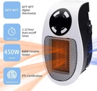 【 Low Energy Consumption 】- The heater runs on 350&450-watt low wattage, more energy-saving and cost-effective than those high power-consuming space heaters. Besides, it will not overload the electrical circuit. Great for people living in a mild climate 2 PACK 【 Adjustable Temperature and LED Display 】- The temperature is adjustable from 60°F to 90°F, and it will display on the LED screen giving you a clear picture 【 180° Rotatable Plug 】- The plug of the space heater is able to rotate 180° to accommodate power sockets in different condition and positions. If your power outlet is upside down, just rotate the plug to fit the outlet 【 Built-in Timer 】- This wall outlet space heater for indoor use is designed with a timer function from 1 to 12 hours in 1-hour increment. Simply press the " Timer " button to set the desired time 【 Safety Overheat Protection 】- Made of quality-assured flame retardant material, this electric heater achieves zero safety hazard. Overheat protection will shut heater off automatically when overheating Space Heater with LED Display Screen Our space heater brings 60 to 90℉ of comforting warmth to your office and room. The fashion outlook fits your room well. The heater also has easy to use manual controls and built in safety features. Features: 180° Rotatable Plug Overheat protection 60 to 90℉ of comforting warmth Timer function for 1 to 12 hours in 1 hour increment Easy Manual Controls Press button around the LED screen and you can turn the heater on and off, set temperature you want from 60 to 90℉, and set timer for 1 to 12 hours Package included: 2 x Space Heater