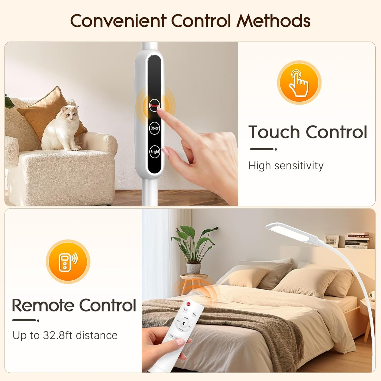 LED Floor Lamp, 12W Remote & Touch LED Reading Standing Light for Living Room Bedroom, Flexible Gooseneck Task Light, 5 Color Temperatures, 5 Level Brightness - White Ships from USA | 30-Day Free Returns Product Details: Item model number U190A Light Source Type LED Style Modern Number of Items 1 Power Source Corded Electric Number of Light Sources 1 Control Method Remote Batteries Included? No Lighting Method Adjustable Lamp Type Floor Lamp Number of Pieces 1 Room Type Office Efficiency Energy Efficient Product Dimensions 9"D x 9"W x 72"H Material Metal Installation Type Freestanding Controller Type Remote Control Is Discontinued By Manufacturer No Specific Uses For Product Reading Brightness 800 Lumen Water Resistance Level Water Resistant Batteries Required? No Item Weight 2 Pounds Connectivity Technology IR Special Features Energy Efficient, Adjustable Color Temperature, Dimmable Special Feature Energy Efficient, Adjustable Color Temperature, Dimmable Part Number U190A Shade Color White Mounting Type Pole Mount Color White Finish Type Painted Wattage 10 watts Base Material Metal Shape Bullet Voltage 110 Volts Recommended Uses For Product Reading Shade Material Plastic Finish types Painted Included Components Remote Control Switch Type Touch Why Buy From Us: Fast & FREE Shipping on all orders All items ship directly from USA warehouses Easy returns – your satisfaction is our priority 24/7 customer support – we’re here to help Shipping & Handling: Most orders are processed within 1 business day . Tracking will be uploaded as soon as your order ships. Estimated delivery time: 2-5 business days . Returns: If you’re not fully satisfied, return the item within 30 days for a full refund or exchange. Buyer pays return shipping unless the item arrives damaged or defective. Shop with confidence – Thousands of happy customers trust us for quality products and fast service!