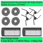 Perfectly Compatible: Fit for Eufy x9 pro Robot Vacuum . Package Content: 4 Pack x Side Brushes 2 Pack x HEPA Filters 4 Pack x Mop Pads Worry-free After-sales: If you have any questions about the product, you can send us an email, and we will give you a satisfactory reply with in 24 hours. Compatible Models: Replacement Accessories Compatible with Eufy x9 pro Robot Vacuum and Mop. Replace Set contains: Replacement parts kit include4 Side Brushes, 2 HEPA filters, 4 Mop Pads . High Standard Parts:Heavy-duty side brushes collect more trash in corners. HEPA filter absorbs finer dust and odors. Microfiber mop pad can make the floor cleaner. Easy to Install: The replacement accessories are perfectly fit for your vacuum, you can easily complete the replacement.If the bristles of the brush are bent, you can soak them in hot water for 30 seconds to recover. Quality Service: To ensure the normal use of your machine, please clean and replace accessories spare in time.