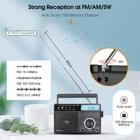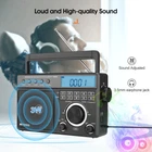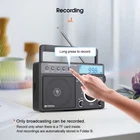 AM/FM/SW 3 band radio; FM(76-108MHz); AM(522-1620KHz); SW(2.3-21.19MHz); multiple bands enhance reception capabilities; lets you choose from more radio stations LCD screen improves the visibility; desktop radio displays power; temperature; frequency; 12/24 hour time; alarm clock and volume level; backlight design allows the elderly to operate the radio easily in the dark Playing external music; support U disk(128G) /Micro SD card(128G) play; digital radio can play your favorite MP3/WMA format music; Micro SD card or USB flash drive is not in the package One-click recording; insert the U disk/Micro SD card (not included) in radio mode; long press the record button to activate the function; recording the radio resources you like Optional power supply methods; AC charging cable (included) kee FM: 76-108MHz / AM: 522-1620 kHz /SW: 2.3-21.19MHZ Full band radio, 9 khz/ 10khz adjustable, widely used around the world. Both 60mm external antenna and the built-in antenna ensue the great reception at any band. If the station is not clear enough, the 360 degree adjustable antenna helps to get a clear reception. Adjust sound level in range: level 0-32. 3W speaker offers loud and high-quality sound. Greatly fills the room with your favorite music. Loud enough for the elder and people with hearing impairment. 3.5mm Earphone jack: plug earphones to enjoy your personal time. Feel peace in a noisy place in your private listening space. Only broadcasting can be recorded. Record only when there is a TF card inside. Recordings are automatically stored in Folder B Format: MP3, WMA; TF≤32G, USB≤64G (TF card & USB disk are not included); Folder A and Folder B can be chosen. Used as an MP3 player, company yourself with your favorite songs. Long press the play/pause button to auto scan. Press the previous or next button to another available station. Rotate the tuning knob to scan. Input numbers to the ideal station fast. Two ways to supply makes sure the radio can be used indoors and outdoors. Indoors, charge the radio through the AC port and listen to the radio for a whole day. Outdoors, supply the battery with 3*D batteries, get real-time listening. (batteries are not included) Easy to identify the current time, and you can switch 12h and 24h format. Alarm will wake you up or remind you of doing what you’re going to do. Three kinds of alarm rings are available to be chosen: alarm tone, the last song you listened to from TF card or USB disk, the last station you listened to. Setting a sleep timer when about to sleep, don’t have to worry about a whole-night playing. Reach stations or songs accurately. Remember and input the number, quickly reaching the station or song. Shortcut key: On/Off, auto scan, alarm, record and so on, one click to control, easy to operate. Big knobs are easy to operate and suited for the elder. Knobs are of good touch-feeling and accurate adjustment. The built-in handle makes the radio easier to carry outdoors. Won’t Miss Any Station: In FM/SW band, 0.05MHZ is adjusted on each rotating. In AM band, 1KHZ is adjusted on each rotating. There shows the battery status, mode and other functions on the screen. The LED-Backlit LCD is thoughtful for elders to us e especially in low-light conditions. Retekess TR629 Portable FM/AM/SW Radio Digital Big Speaker Recorder Clock Elder Feature AM/FM/SW 3 band radio; FM(76-108MHz); AM(522-1620KHz); SW(2.3-21.19MHz); multiple bands enhance reception capabilities; lets you choose from more radio stations LCD screen improves the visibility; desktop radio displays power; temperature; frequency; 12/24 hour time; alarm clock and volume level; backlight design allows the elderly to operate the radio easily in the dark Playing external music; support U disk(128G) /Micro SD card(128G) play; digital radio can play your favorite MP3/WMA format music; Micro SD card or USB flash drive is not in the package One-click recording; insert the U disk/Micro SD card (not included) in radio mode; long press the record button to activate the function; recording the radio resources you like Optional power supply methods; AC charging cable (included) keeps you listening to radio indoors; 3 D batteries (not included) keep this shortwave radio away from power outage How to tune? 1. Through the knob on the right, you can manually tune in steps. 2. The radio frequency can be input through the numeric keyboard. 3. In radio mode, long press the "CLOCK" or "ALARM" button on the left to automatically jump to nearby available radio stations. 4. In radio mode, long press the "ATS" button on the left to automatically search for radio stations. How to store and read radio stations? 1. In the radio mode, short press the "RECORD" button on the left to manually store the current station to the preset number you want. 2. During manual preset, the "MEM" at the top right of the screen will flash. At this time, you can switch the number you want to store with the knob on the right side of the radio. 3. In the radio mode, you can read the preset by pressing and holding the "0" button. When the "MEM" is flashing at the top right of the screen, select the preset you want to read by using the knob. 4. In the radio mode, if you want to delete a preset, just switch to the corresponding station and long press the "6" button to delete the current preset. Specification: Power input: AC 110V/ DC:4.5V (3 X D) Speaker: 3.5 inch\6 Ω\3W Size: 8.1x2.4x5.1 inches Weight: 29.17oz(not battery) Notice: The unit of temperature is displayed in degrees Celsius. AM band auto tuning step is 9KHz, manual tuning is recommended. It will be improved later. Package Includes: 1* TR629 Radio 1* AC Power Cable 1* User Manual About Us