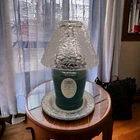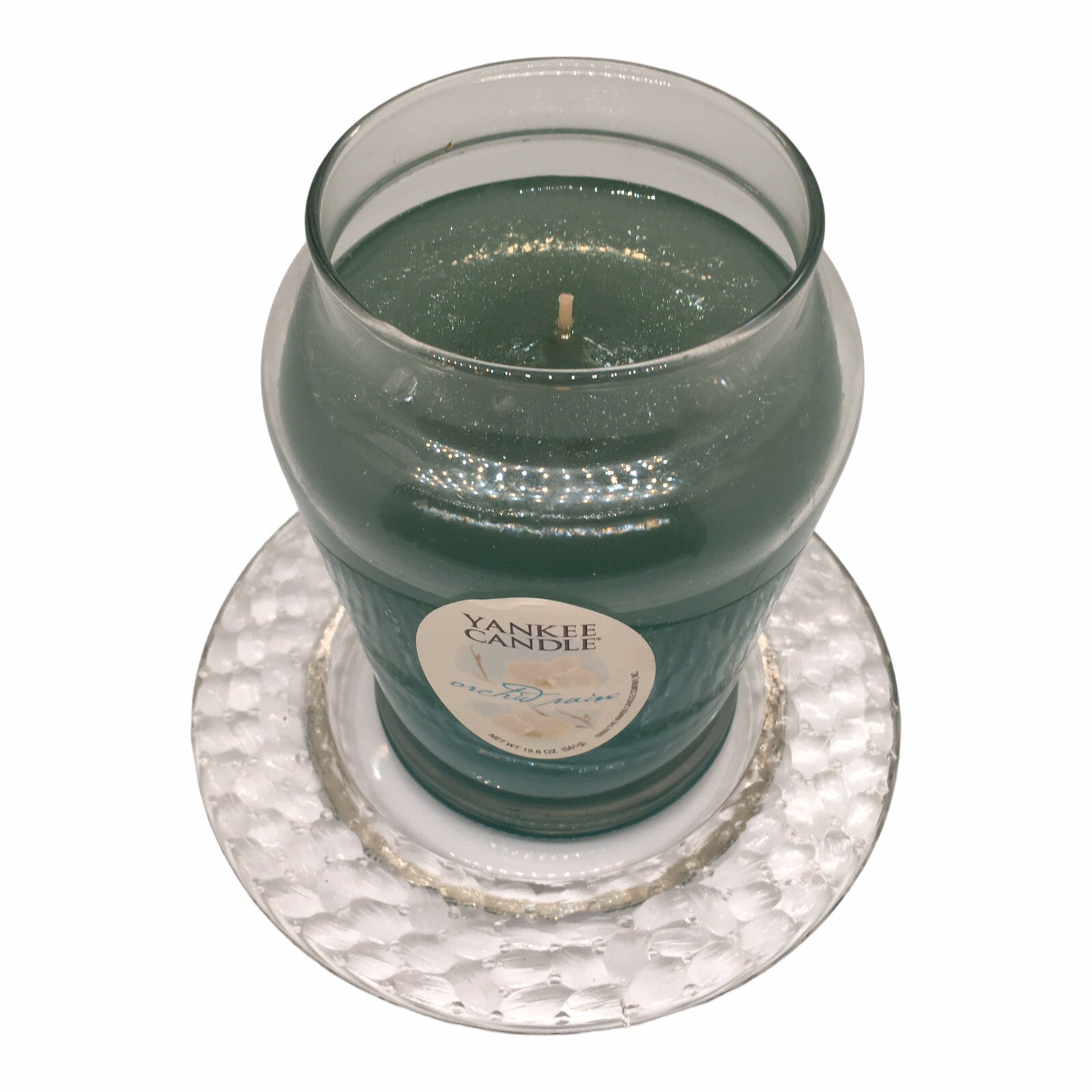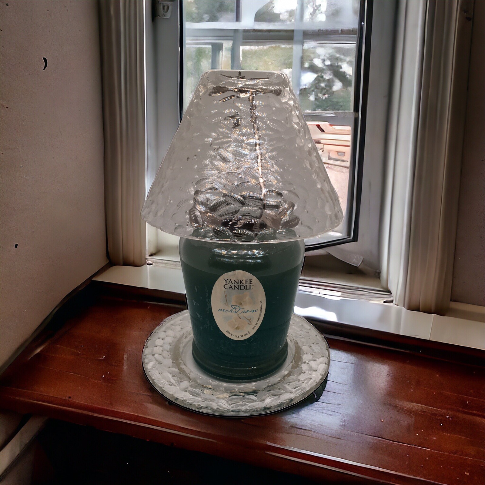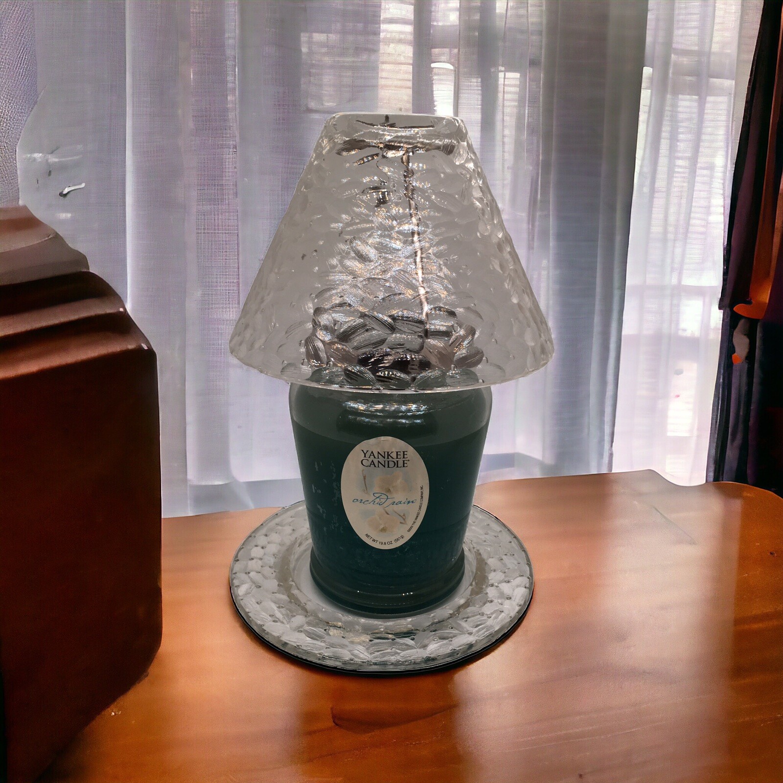 The items are being sold as a Valentine’s Day Gift Set and will not be sold separately. For your consideration, the items are as follows: 1 (one set) Unbranded Textured Clear Glass Candle Topper (shade) & Plate (base). Condition is used, without chips or scratches and includes internal hardware. Plate measures approximately 6.75” in diameter. Shade measures approximately 5.25” tall x 6.75” wide. (without retail box) 1 (one) Yankee Jar Candle Orchid Rain, 19.8 Oz. Single Wick (unsealed, unused without retail box) This Yankee Candle gift set in the scent Orchid Rain is a must-have for any candle lover. The large 19.8 oz tumbler candle comes with a coordinating shade and plate, making it a perfect gift for a loved one or a treat for yourself. The candle is crafted from paraffin wax and has a traditional style with a floral and garden theme. With a burning time of 60 to 85 hours, this candle is perfect for adding an inviting atmosphere to any room. The purple color of the candle and the scent of orchid rain create a serene and calming effect. This item is brand new and has never been used.