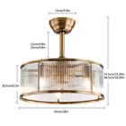 Specifications Color: Gold Material: Copper, Tempered Glass, ABS Surface Treatment: Solder Process Style: Retro Motor Type: Pure Copper&Reversible Motor Number of Fan Blades: 7 Mounting Type: Ceiling Mount Rated Voltage: 85-265V Rated Power: 40W Power Source: DC Wind Speed Gears: 6 Timing: 1/2/4h Bulb Size: 5*E26/E27 (Not Included) Suitable Area: 10-15㎡/107-161ft² Electric Fan Design: Ceiling Fan Room Type: Bedroom, Living Room, Dining Room, Living Room, Kitchen Controller Type: Frequency Conversion Remote Control Efficiency: E Noise: About 40dB Base Size(L*H): 15*5cm/5.9*1.96inch Lampshade Size(L*H): 45*16.5cm/18*6.5inch Down-rod Length: 12cm/4.8inch, 25cm/9.8inch Product Height: 33.5cm/13.26inch, 46.5cm/18.26inch Gold Retro 18 In Ceiling Caged Fan Light Fan Lamp 40W W/ Remote For Living Room Description This 2-in-1 ceiling fan light allows you to feel the bright light and enjoy the coolness at the same time. It has six gears of wind speeds with a timing function to meet your daily usage needs. It can be integrated with different decoration styles and is ideal to create an excellent life and sleep environment to accompany you in all seasons. Key Features Stylish Exterior: The cylindrical lampshade, retro color scheme (Gold), and delicate lines make it very luxurious, and the water ripples on the tempered glass look like a flowing lake. It can be a good decorative piece to blend in with different decor styles and add color to your room. Great Durability : The lampshade is made of high-quality copper with a s oldering process and tempered glass with high transparency, which is heat-resistant , strong, durable, and not easy to deform. The fan blades are made of ABS, which has high strength, good toughness, and good formability, which can ensure a smooth surface and good gloss. High Safety: It is enclosed with 7 ABS blades hidden in the cage to avoid an accident caused by getting involved in the blades, so it's much safer than traditional fans to protect your family away from the fan blade's danger. 2-in-1 Function: The ceiling fan light has the function of fanning and lighting. It can not only illuminate you but also reduce heat, which can save you a lot of space. Adjustable Speed&Working Time: It has 6 gears of wind speed and you can choose low speed to enjoy the comfortable breeze or high speed to cool down quickly. Meanwhile, You can control its working hours in advance (1/2/4 hour), which can bring you great convenience. Easy to Clean : The smooth and flat shell, as well as the detachable fan blades, make this product easy to clean. You only need to clean it with a dry cloth, saving you lots of time and effort. Details Remote Control: It allows you to remotely control the timing, wind speed, etc, saving you lots of effort. Down Rods: This product is equipped with two down-rods with different lengths for different ceiling heights. Pure Copper Motor: It has stable performance, low-temperature rise, and low noise(About 40dB), providing a quiet working and sleeping environment. Meanwhile, there are a lot of heat dissipation holes on the motor shell, which can provide a good heat dissipation effect to ensure the stable operation and long service life of the motor. Application It is suitable for the living room, dining room, kitchen, study bedroom, small bedroom, conference room, and other places of 10-15㎡/107-161ft². Specifications Color: Gold Material: Copper, Tempered Glass, ABS Surface Treatment: Solder Process Style: Retro Motor Type: Pure Copper&Reversible Motor Number of Fan Blades: 5 Mounting Type: Ceiling Mount Rated Voltage: 85-265V Rated Power: 40W Power Source: DC Wind Speed Gears: 6 Timing: 1/2/4h Bulb Size: 5*E26/E27 (Not Included) Suitable Area: 10-15㎡/107-161ft² Electric Fan Design: Ceiling Fan Room Type: Bedroom, Living Room, Dining Room, Living Room, Kitchen Controller Type: Frequency Conversion Remote Control Efficiency: E Noise: About 40dB Base Size(L*H): 15*5cm/5.9*1.96inch Lampshade Size(L*H): 45*16.5cm/18*6.5inch Down-rod Length: 12cm/4.8inch, 25cm/9.8inch Product Height: 33.5cm/13.26inch, 46.5cm/18.26inch Package Included 1 * Ceiling Fan Light 1 *English Manual 1* Remote Control 1* 23A Battery All Accessories for Assembly Notes Please cut off the power supply when cleaning. The remote control is powered by a 23A battery (Included). Please note that the wall switch can only turn on the light or turn off the main power, and the ceiling fan can only be controlled by the remote control. This product does not include a light bulb. Please prepare five E12/E14 bulbs in advance. Please read the manual completely before installation and use, and pay particular attention to the safety instructions included. Please allow the slight color difference caused by the shooting light and 1-3cm error due to manual measurement, and make sure you do not mind before you order. Payment Delivery details Terms of sales About us Contact us Payment We accept ebay payment 。 Fees such as import duties, taxes are not included in the item price or shipping costs. These charges are the buyer's responsibility. Delivery details Shipping: 2-9 working days to: USA Terms of sales We maintain high standards of excellence and strive for hundred percent customer satisfaction. Feedback is very important to us. We hope that you contact us immediately before you give neutral or negative feedback, so that we can address your concerns. It is impossible to address issues if we do not know about them! About us Your satis faction is our ultimate goal. We work hard to earn your trust and future business. Our certified technicians have tested each item before shipping. The unit comes with 1 year limited warranty on all manufacturing defects. a) If you receive a defective item, you may return it or ask for a discount. Please contact us within 14 days after you receive the package. b) What you returned must be intact and in its original packaging as re? u. Customer is responsible for shipping costs of the re