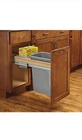 Rev-A-Shelf Pullout Top Mount Trash Can w/ Soft-close, 35 qt., 4WCTM-12BBSCDM1 About this item Pullout Waste Container: Maximize kitchen space and store waste out-of-sight with the single 35-quart pullout waste container for under kitchen cabinets Pullout Kitchen Waste Bin Specifications: Dimensions (W x D x H): 12"W x 22.75"D x 17.88"H; Designed for cabinet openings that are 12 inches wide Adjustable Trash Can: Durable construction with a front side mounting, adjusting rear moveable brackets, and full extension with 150-pound rated ball-bearing slides Easy Installation Trash Can: Fully assembled waste bin; Includes (1) 35-quart bin, (1) rear bin, adjustable brackets, and full-extension ball-bearing slide Rev-A-Shelf Difference: A global family-owned company offering holistic, convenient, stylish, and smart organization and storage solutions for kitchens, baths, closets, and whole homes since 1984 When it comes to home décor, your trash container can pose a challenge. If space and aesthetics are an issue, then you need the Rev-A-Shelf 35-Quart Pullout Trash Container Bin. This is an easy-to-install design for a no-fuss set-up, suitable only for a 12-inch cabinet opening. This trash container includes 1 gray 35-quart waste container, 1 rear bin for trash bags or supplies, front-side mounting, adjustable rear moveable brackets, and full extension, soft-close ball-bearing slides. Rated at 150 pounds, the drawer slides provide reliable strength for all your waste. This trash container’s modern maple exterior even complements your kitchen while the durable finish lasts the long haul. With the long-lasting finish of the Rev-A-Shelf Pullout Trash Bin, you are able to enhance the modern design of your kitchen and make it last for years to come. This innovative solution will provide your kitchen more room and great usability, which will increase efficiency and organization. Upgrade your kitchen to create an incredibly great cooking experience by combining durability and style. Double-check your cabinet's opening to allow the best fit. Measure side to side, front to back, and top to bottom. Double-check to make sure your product is within measurements and don't forget to take into account any obstructions. Enjoy a spacious, functional kitchen, thanks to the Rev-A-Shelf Pullout Trash Bin. FEATURES Wood Top Mount Pullout Single Waste Container with BB Soft-close to maximize kitchen space and keep your trash and recycling hidden yet easily accessible Full Product Dimensions: 12.0"W x 22.75"D x 17.88"H Minimum cabinet opening for a Face frame cabinet is 12"W x 22.75"D x 18.35"H, and minimum cabinet opening for a frameless cabinet is 12"W x 22.75"D x 18.35"H; Designed for only a cabinet opening width of 12" Features fully assembled maple wood construction with a clear coat finish for durability Mounts to cabinet side, and installation requires proper alignment for proper performance Simple but effective 3-piece zinc plated full-extension ball-bearing slide system for organizing almost any kitchen Top Mount Waste Containers come in many different widths as they are specific to a cabinet opening to function properly; Once installed, unit can be removed for easy cleaning Includes adjustable Door-Mount brackets which are required for operation; Finish off your installation by attaching your own cabinet door Manufacturer warranty: Limited lifetime warranty Product Type: Pullout Waste Container Color: Light Brown Weight: 14.1 lb. Material: Maple Veneer SPECIFICATIONS Brand Rev-A-Shelf Suitable For General Waste Size Medium Room Kitchen Number of Compartments 2 MPN 4WCTM-12BBSCDM1 Model 4WCTM-12BBSCDM1 Material Plastic Item Width 12 in Item Weight 14.1 lbs Item Length 22.75 in Item Height 17.88 in Country/Region of Manufacture China Color Silver Capacity 35 qt Type Built-In/Pull Out Trash Can