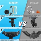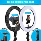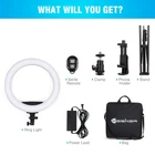【INTELLIGENT AND QUICK COLOR CHANGE】: Ring Lights are controlled via the knob on the stand. Adjust the color temperature from 3200K to 6000K easily without using color filters and ring light have a wide brightness dimming range from 10%-100%. Achieve cold white light or warm light to hide blemishes and change skin tones quickly and easily.12 heat dissipating hole can cool your ring light,which will extend the life of the product. 【STURDY SUPPORT STAND】: Adjustable height ranges from 31.5 inches to 73 inches; Equipped with 1/4 inch screw thread on the top; Made of aluminum alloy; Pretty stable 3-leg stage design and solid locking system keeps all your stuff in safe without any wobble when in use.The retractable folded tripod can effortlessly adjust to the height you want, when you use them please put the three legs down. 【360° ROTABLE PHONE HOLDER】: A hot shoe adapter for most DSLR camera, a adjustable phone holder (max can reach to 4.13") for most smartphones, you can rotate your phone into vertical mode or horizontal mode freely without taking the phone out of the holder. Best for Selfie video recording, camera photography shooting, makeup live streaming. It can be used for DSLR camera/Smartphone/Mirrorless camera/Mirror. With wireless remote control, set your hands free for photo shooting. 【WIDE COMPATIBILITY】: 112pcs Osram 2835 LED beads on our Ring Light eliminates stark shadows, widely applied to lighting, fashion, wedding art, advertisement photography, makeup, videos, studio shoot, portrait photography, live streamingamd selfies etc. 【PACKAGE INCLUDES】:Inside of your package, you will receive: LED Ring Light Body (18 in / 46cm) x1, Tripod (20-75 in / 50-190 cm) x1, Wireless Remoter x1, Phone Holder x1, Hot shoe adapter x1, Power Adapter x1, Durable Carry Bag x1 and Instruction manual x1