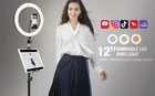 12’’ RING LIGHT WITH TRIPOD STAND (72’’ TALL) & IPAD/PHONE HOLDER DIMMABLE SELFIE CIRCLE LED LIGHTS RINGLIGHT FOR VIDEO RECORDING, CONFERENCE, MAKEUP, LAPTOP, COMPUTER, WEBCAM, YOUTUBE IF YOU DON'T LOVE IT, RETURN IT AND WE'LL REFUND YOUR MONEY BUY IT NOW ONLY QUALITY PRODUCTS PRODUCT DESCRIPTION: UPGRADED RING LIGHT Lightweight aluminum alloy shell and 168 pieces SMD LED is used to build the 12in big ring light. The ring light maximum working power is up to 15W with 3 color modes - daylight, warm, or white, and 10 brightness intensity levels. This LED lights will provides a professional-quality, shadow-free and clean spread of light for makeup, video recording, photography, webcam, YouTube video, lives streaming, selfies, and more. FITS IPAD AND PHONES Comes with a phone holder and a tablet holder, which allows you to use two devices in the same time. Compatible with iPad and most smart phones, such as iPad 2, 3, 4, 5, 6, iPad air 2 3, iPad mini 2 3 4 5 6, iPhone 13, 13Pro, 12, 12Pro, 11, 11Pro, X, Xs, Xs Max, 8 plus, 8, 7, 7 plus, 6, 6s, 6s Plus 5, 5s, 4, 4s/Samsung Note 8, S8 to S21/Huawei/LG/HTC etc. (NOTE: NO fits iPad Pro 12.9). TALL TRIPOD Built by high-end aluminum alloy and adopt a foldable design, Elitehood tripod well balance portability, stability and height. Tripod Only 16 inches when it folded, but is able to extend from 16’’ to 60’’ (72’’ with the ring), meet the needs of people of different heights while standing & sitting use. USB POWERED Works with most devices that have a USB port: USB charger, AC adapter, Power Bank, laptops, PC, etc…Four buttons on 78’’ cords to power on/off, switch the lighting color and brightness, easy to get desired lighting in seconds. Comes with a wireless remote shutter to control your cell phone while shooting photos or recording videos form distance ( 5-10m ); Compatible with iOS and Android Phones WHAT YOU GET: 1 x Elitehood 12’’ LED Ring Light, 1 x Tripod Stand, 1 x Bluetooth Remote Shutter, 1 x Ring Carry Bag, 1 x Flexible Phone Holder, 1 x Tripod Mount Tablet Holder, 1 x User Guide Installation of light stand 1. Take it out 2. Loosen the fixing screw knob 3. Holde the middle pole of the light stand with one hand and pull out the stand legs with the other hand 4. Adjust the stand legs to the angle you want 5. Fix the 3 legs stably 6. Loosen the screw knob on the middle pole to extend the light stand to the height you want 7. Tighten the screws to fix it BUY IT NOW WHY YOU SHOULD CHOOSE US? ONLY QUALITY PRODUCTS FREE SHIPPING – FAST SHIPPING – GREAT CUSTOMER SUPPORT 100% GUARANTEED SATISFACTION - NO CHARGE TAXES HEINRICH.ECOMMERCE