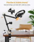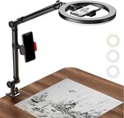 Ring Light with Stand and Phone Holder USB 10'' Ring Light for Desk Overhead 【10'' Dimmable Selfie Ring Light】This 10 inch dimmable desktop ring light consists of double rows of LED lights which provide 3200K-6500K color temperature, so it is soft and bright enough to adjust your lighting need. The overhead camera mount with ring light features 3 colors lighting modes and each mode has 10 brightness levels, you can always choose what you need to adjust to the mode and brightness you want to get the perfect amount of lighting. 【Multiple Application】If you do live steaming on Instagram/Youtube/Tiktok, but always find yourself difficult to find the perfect lighting.The ring light with clamp and 1m harness sticker stand will perfectly solve your problem. It can really make a big differences in the quality of your live streaming and videos.More than that, this overhead tripod for iphone performance well on video recording,broadcasting, zoom meeting,but also provides lights for photography, makeup,selfie,filming and etc. 【Flexible & Durable Stand with 2 Phone Holder】The overhead camera mount uses aluminum alloy material, the total weight of the main bracket is 1.94 pounds, and using a unique gear joint, you can choose any suitable angle in 360°. This ring light with stand has 2 phone holders, the ring light has a 1/4'' ball head connected a phone holder, and the main bracket has a movable phone holder that can be adjusted arbitrarily. You can work with two phone holder at the same time. 【Dual Channel Protective Desk Clamp】 This overhead camera mount has two channels on the top and side, you can choose it as you like, such as on tables and chairs, making it more widely used. The inside of the C-clamp has sponge cushions and rubber cushions to prevent scratches on the desktop. The maximum clamping range for the table is 2.4''/6cm. Save your space than the light tripod. 【After Sales Service】 If you are not satisfied with LUOLED ring light with stand and phone holder or have any further issues, you could contact us anytime. And you will get a satisfactory answer and solution within 24 hours 1 year warranty. ------------------------------------------------------------------------------------------ Shipping Policy: Domestic lower 48 states shipping is free and expedited. Shipping is also free to the rest US states and US Protectorates including Puerto Rico, Alaska, Hawaii, APO/FPO, but delivery times are longer than usual. If you need your order by a specific date please contact us before you make the purchase for a delivery estimate. ------------------------------------------------------------------------------------------ Return Policy: Your satisfaction is guaranteed! If for any reason you are unhappy with your item, just return it within 30 days for a full refund. Please contact us prior to initiating a return so that we can issue you a refund authorization.