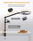 Ring Light with Stand and Phone Holder, USB 10'' Ring Light for Desk, Overhead Camera Mount with Ring Light, Desktop Ring Light with Clamp for Photography/Makeup/Live Stream Video/YouTube Product Details Brand: LUOLED Connectivity Technology: USB Hardware Interface: USB Has Self-Timer: No Product Dimensions: 12.6"L x 0.01"W x 1.65"H 【10'' Dimmable Selfie Ring Light】This 10 inch dimmable desktop ring light consists of double rows of LED lights which provide 3200K-6500K color temperature, so it is soft and bright enough to adjust your lighting need. The overhead camera mount with ring light features 3 colors lighting modes and each mode has 10 brightness levels. 【Multiple Application】 It can really make a big differences in the quality of your live streaming and videos. This overhead tripod for iphone performance well on video recording,broadcasting, zoom meeting, photography, makeup,selfie,filming and etc. 【Flexible & Durable Stand with 2 Phone Holder】The overhead camera mount uses aluminum alloy material, the main bracket uses a unique gear joint, you can choose any suitable angle in 360°. This ring light with stand has 2 phone holders. 【Dual Channel Protective Desk Clamp】 This overhead camera mount has two channels on the top and side, you can choose it as you like, such as on tables and chairs, making it more widely used. The inside of the C-clamp has sponge cushions and rubber cushions to prevent scratches on the desktop. The maximum clamping range for the table is 2.4''/6cm. Save your space than the light tripod.