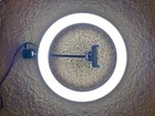 Ring light with stand (phone holder included). 10 inch led selfie Ring light with Tripod stand & phoneholder for makeup & Tiktok 10 inch dimmable LED Ring Light with a wide dimming rangefrom 1%-100%. Special LED design, lightweight and portable. Constant Current drive, low power loss. NO ultraviolet and infraredlight radiation, low heat output, safety and environmental protection. Long service life of more than 50000hrs. With reinforcedflexible arm which will move freely and never droop. Extra Long Cord and Heavy Duty Thumb Screws. It is widely applied to outdoorphoto light, filling light indoors, portrait, fashion, wedding art, Advertisement photography,shooting video, etc.